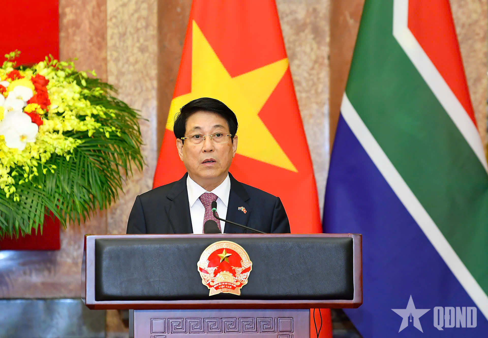 Phát biểu tại buổi gặp gỡ báo chí, Chủ tịch nước Lương Cường bày tỏ vui mừng chào đón Ngài Tổng thống dẫn đầu Đoàn đại biểu cấp cao Cộng hòa Nam Phi thăm cấp nhà nước đến Việt Nam; khẳng định chuyến thăm có ý nghĩa rất quan trọng, là hoạt động trao đổi đoàn cấp nguyên thủ đầu tiên giữa hai nước sau gần 20 năm, là dấu mốc lịch sử, mở ra một chương mới thúc đẩy nâng tầm quan hệ Việt Nam - Nam Phi, vì lợi ích của nhân dân hai nước, vì hòa bình, phát triển ở khu vực và thế giới.
