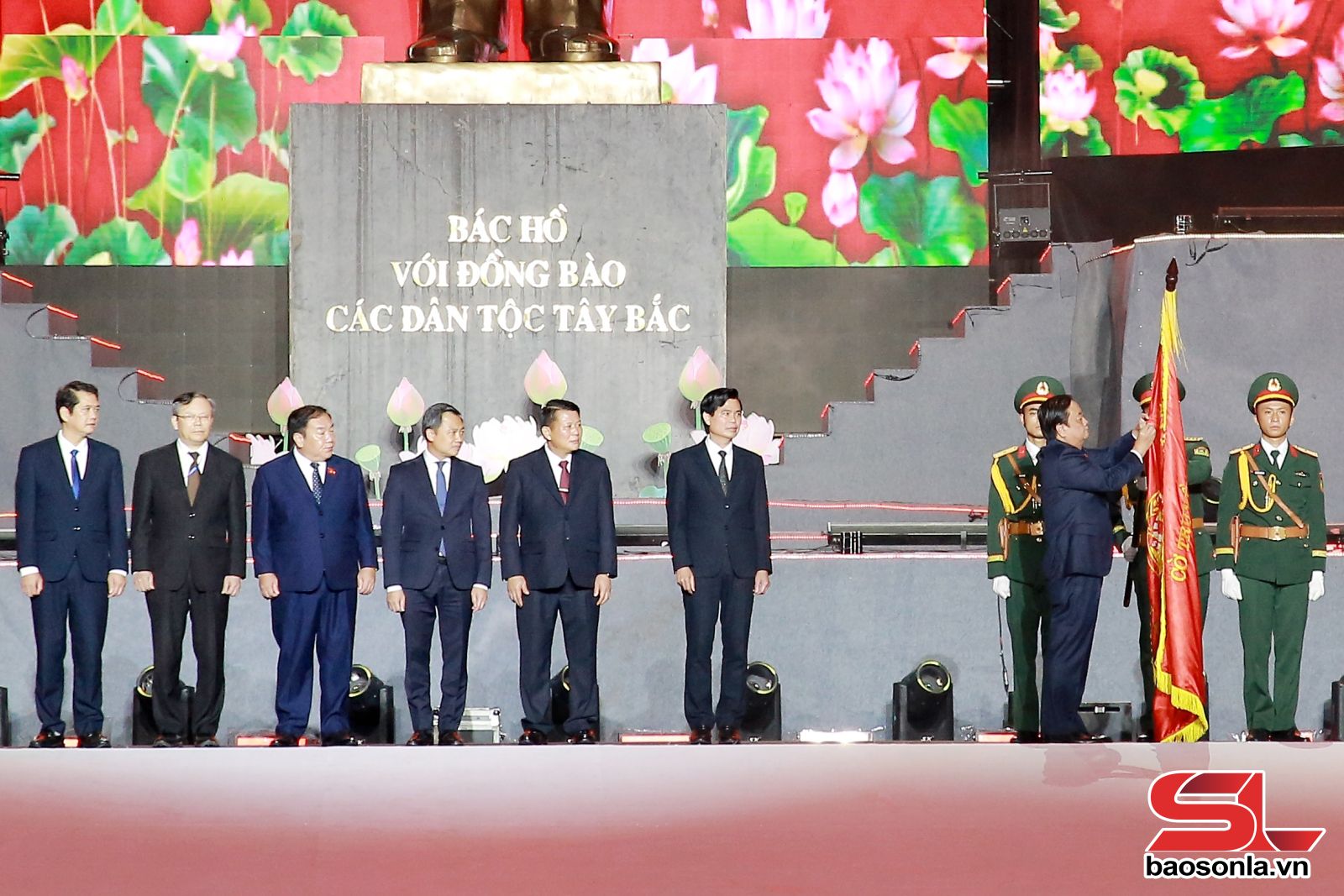 Đồng chí Lê Minh Hoan, Phó Chủ tịch Quốc hội chuyển trao Huân chương Lao động hạng Nhất cho Đảng bộ, chính quyền và nhân dân các dân tộc tỉnh Sơn La.