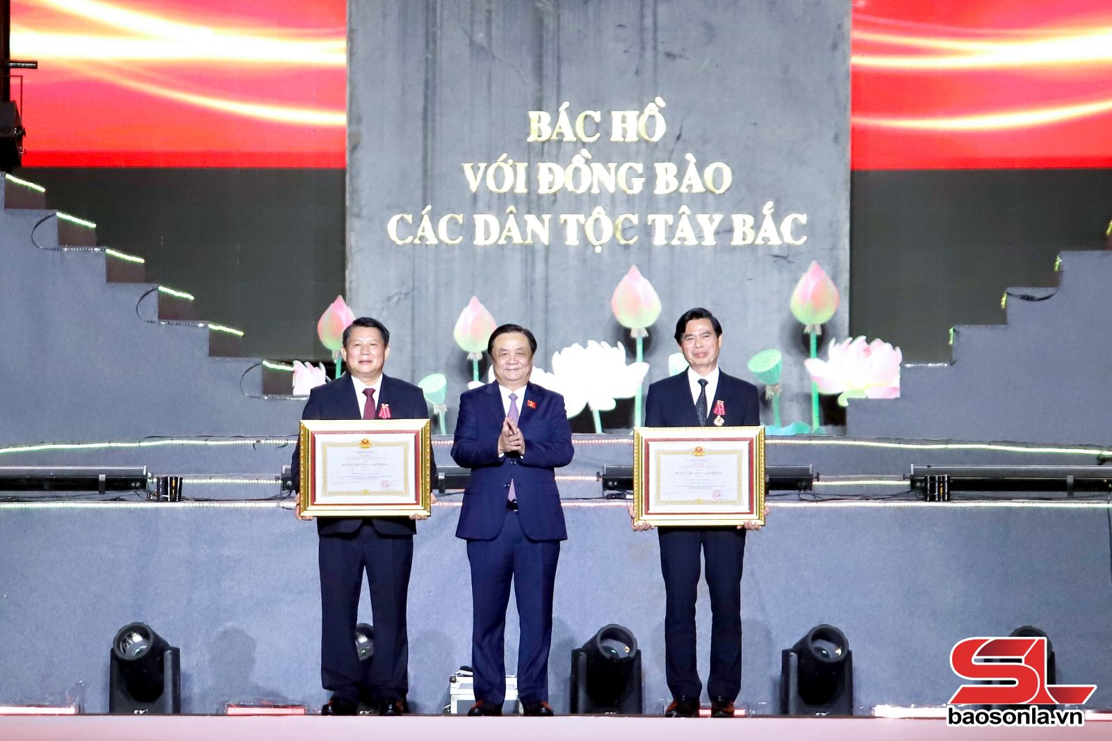 Đồng chí Lê Minh Hoan, Phó Chủ tịch Quốc hội chuyển trao Huân chương Lao động hạng Ba cho đồng chí Hoàng Quốc Khánh, Bí thư Tỉnh ủy và đồng chí Lò Minh Hùng, Phó Bí thư Thường trực Tỉnh ủy.
