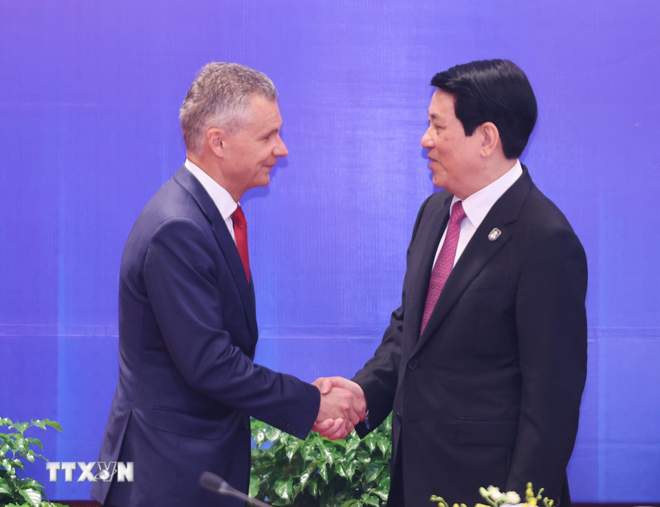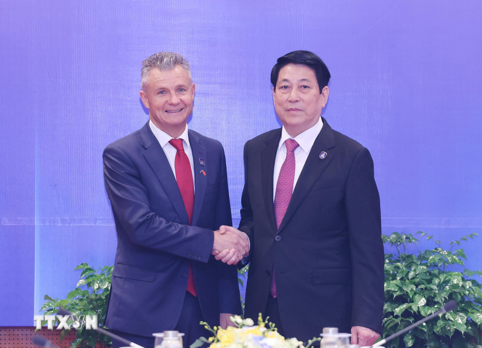 Chủ tịch nước Lương Cường tiếp ngài Matt Thistlethwaite, đồng Bộ trưởng về Ngoại giao và Thương mại Australia. (Ảnh: Lâm Khánh/TTXVN)