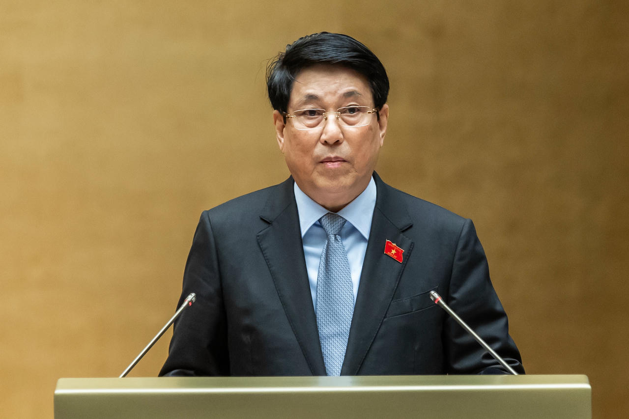 Chủ tịch nước Lương Cường báo cáo trước Quốc hội (Ảnh: Quang Vinh)