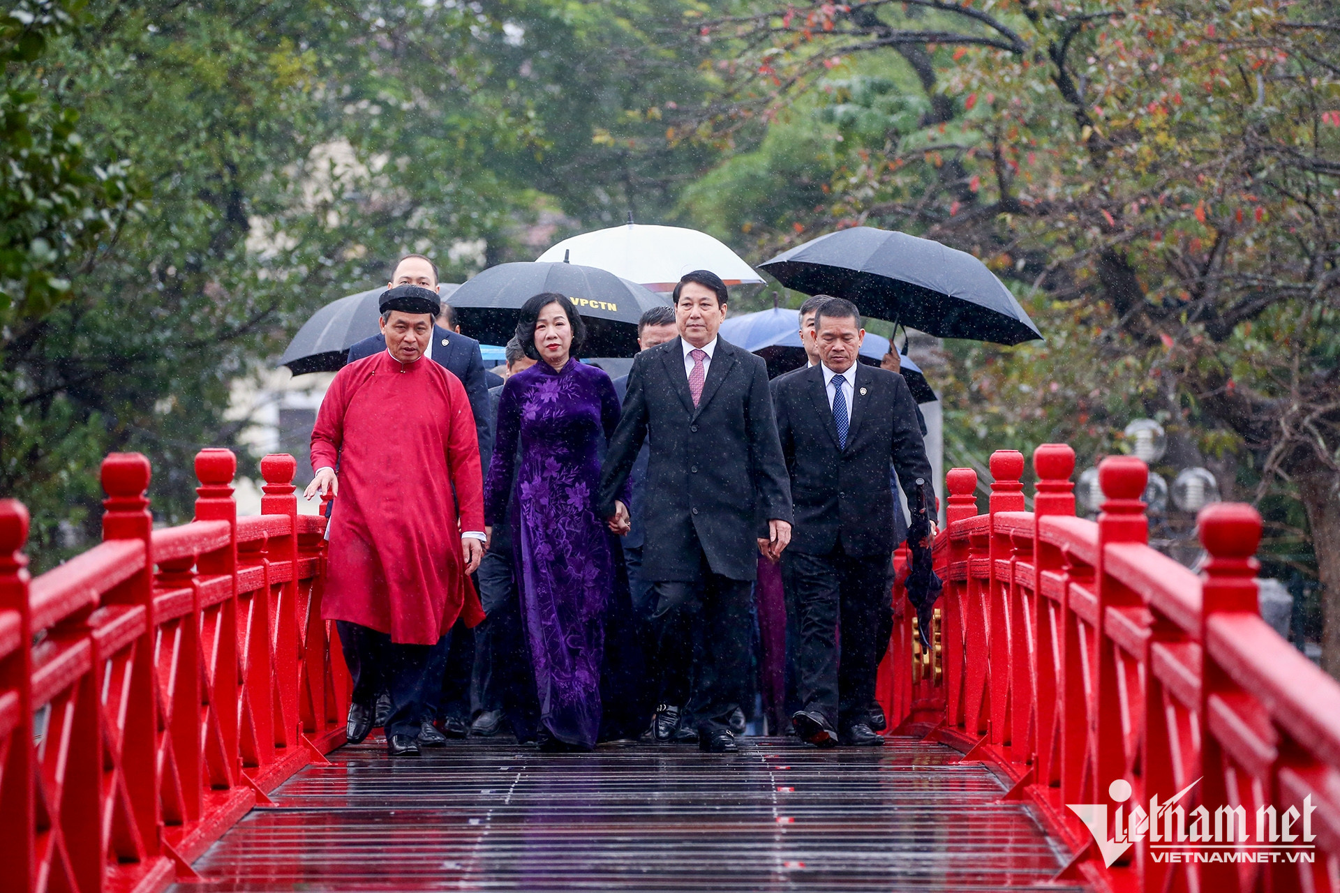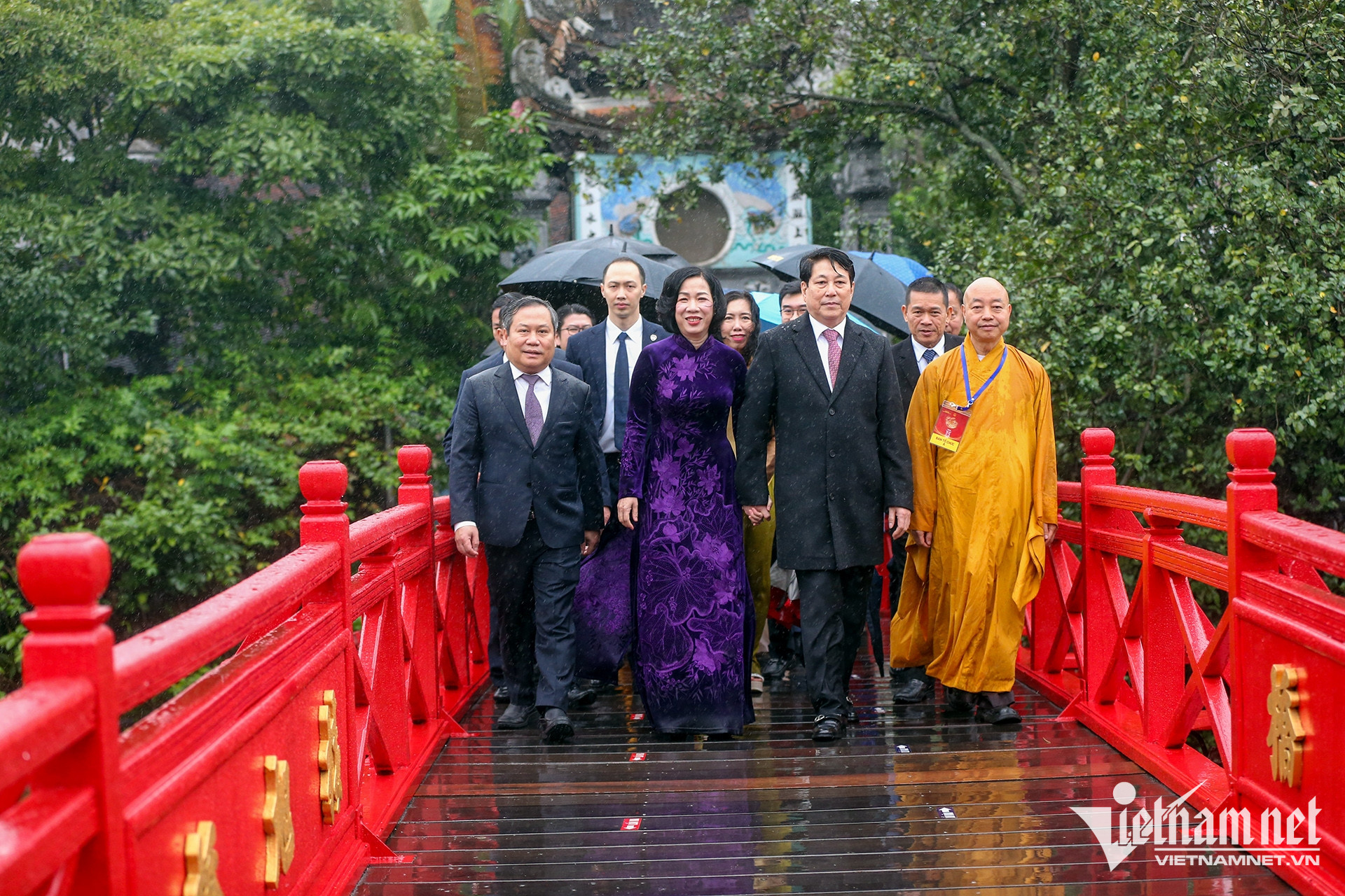 Trước đó, Chủ tịch nước và đoàn đại biểu kiều bào đã đến dâng hương ở tượng đài Lý Thái Tổ, đền Ngọc Sơn.