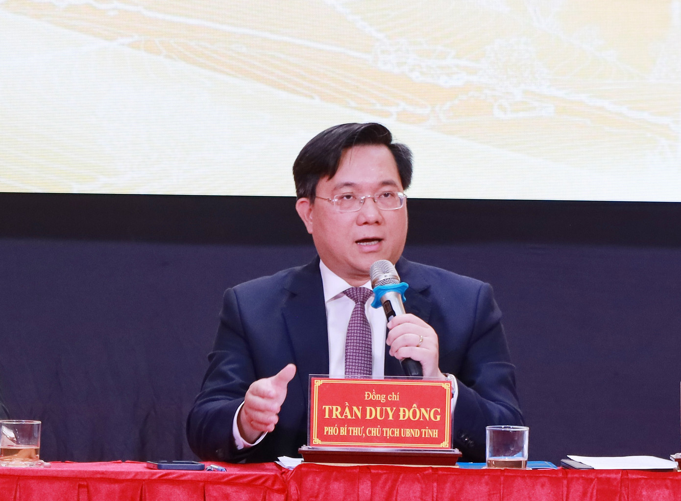 Ông Trần Duy Đông khẳng định tỉnh tiếp tục thực hiện cải cách mạnh mẽ thủ tục hành chính, phấn đấu giảm thêm 30% thủ tục so với hiện tại, ưu tiên đầu tư hạ tầng giao thông, đẩy nhanh xây dựng nhà ở xã hội và nhà công đoàn để thu hút và giữ chân lao động chất lượng cao đến làm việc tại tỉnh.