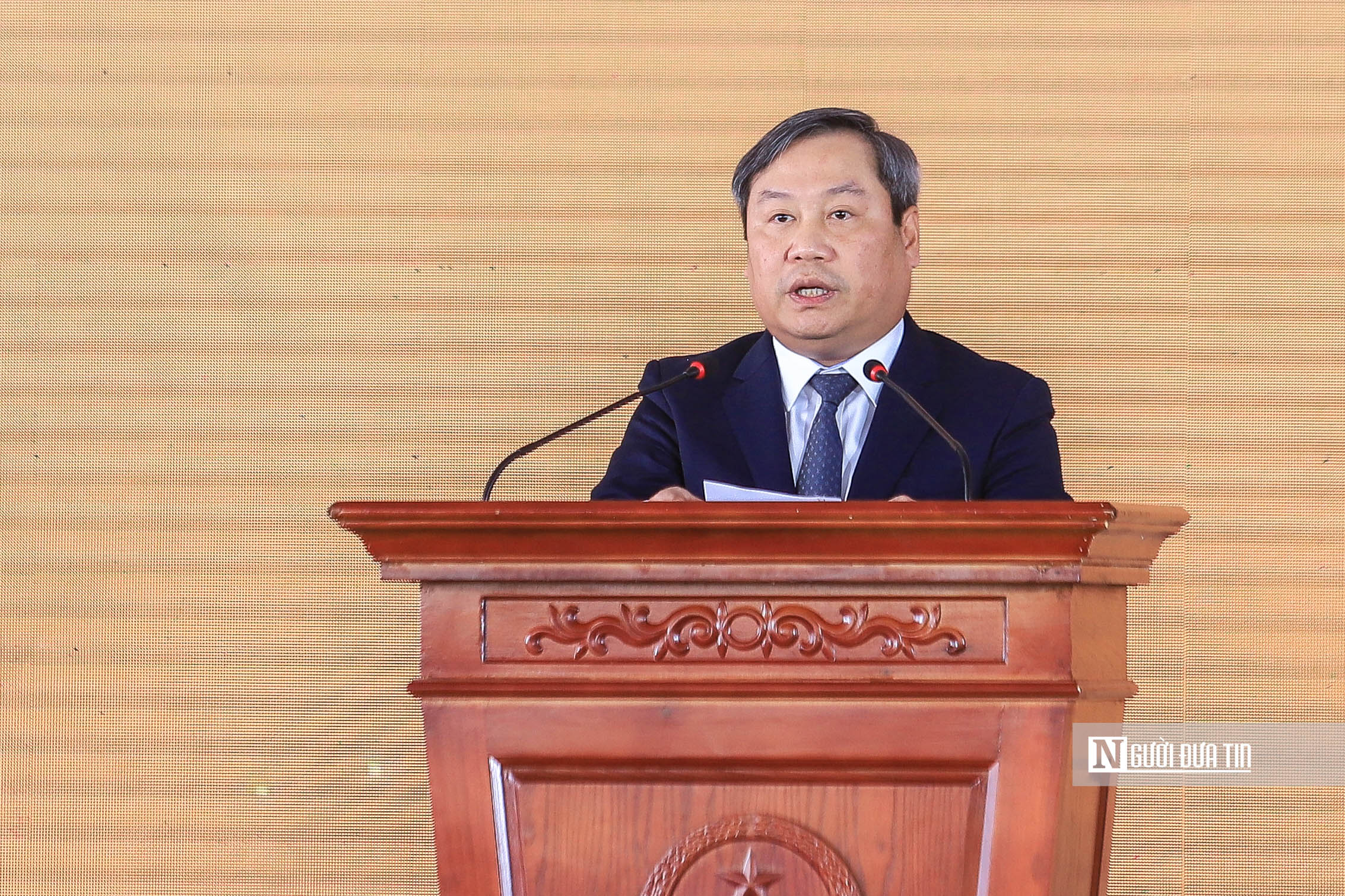 Chủ tịch UBND Thành phố Hà Nội Vũ Đại Thắng phát biểu tại lễ khởi công (Ảnh: Hữu Thắng).