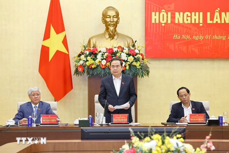 Chủ tịch Quốc hội Trần Thanh Mẫn chủ trì Hội nghị lần thứ hai Ban Chấp hành Đảng bộ Quốc hội nhiệm kỳ 2025-2030. (Ảnh: Doãn Tấn/TTXVN)