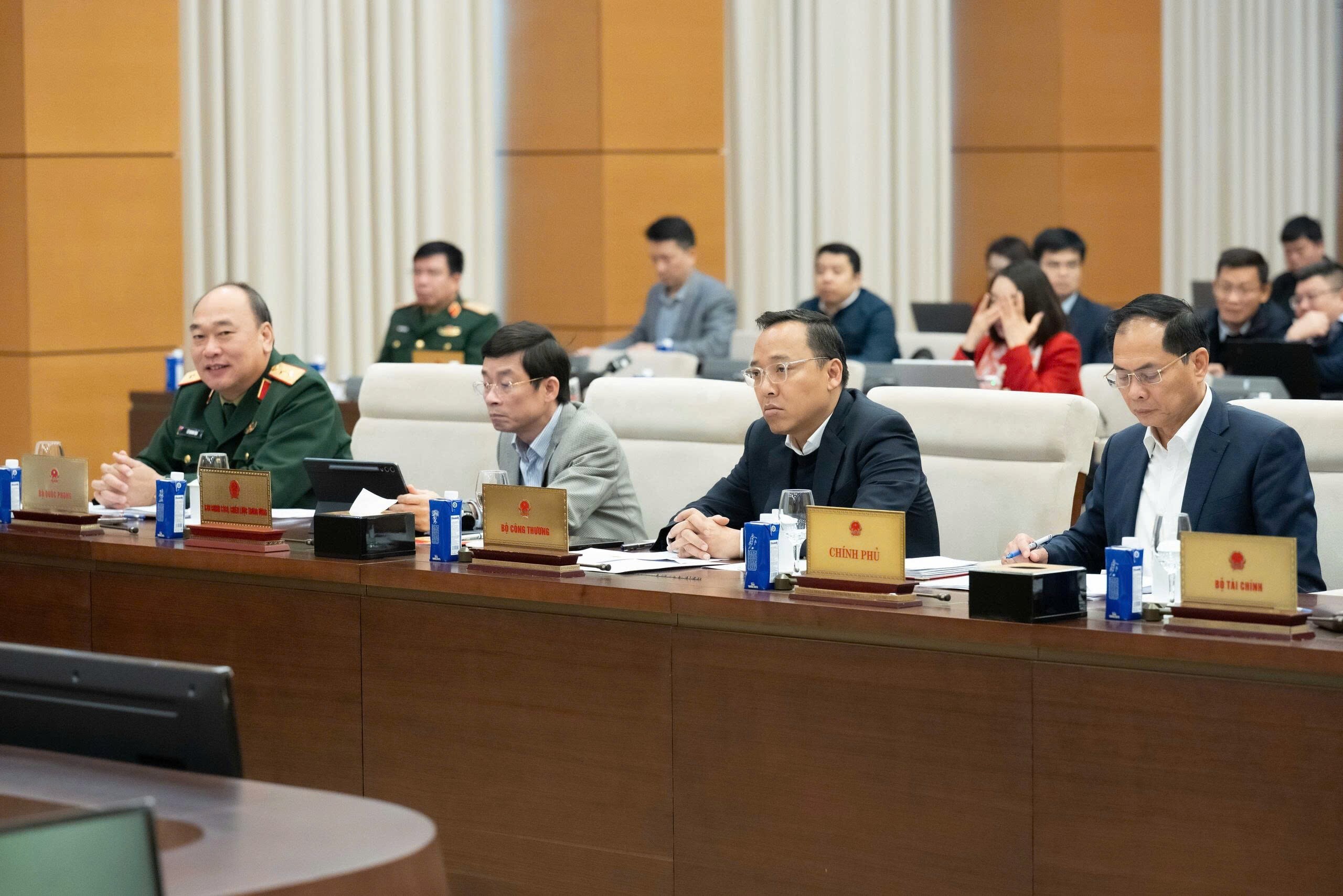 Đồng thời, xem xét Nghị quyết bổ sung một số cơ chế, chính sách đặc biệt đầu tư xây dựng Dự án điện hạt nhân Ninh Thuận. Thứ trưởng Bộ Công Thương Nguyễn Hoàng Long đã trình bày Tờ trình về nội dung này tại phiên họp.