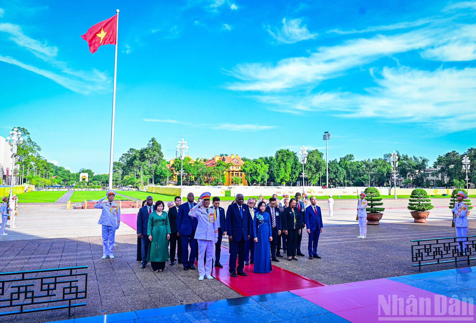 Chủ tịch Quốc hội Cuba Esteban Lazo Hernandez và Đoàn đại biểu cấp cao Quốc hội Cuba thành kính tưởng nhớ Chủ tịch Hồ Chí Minh.