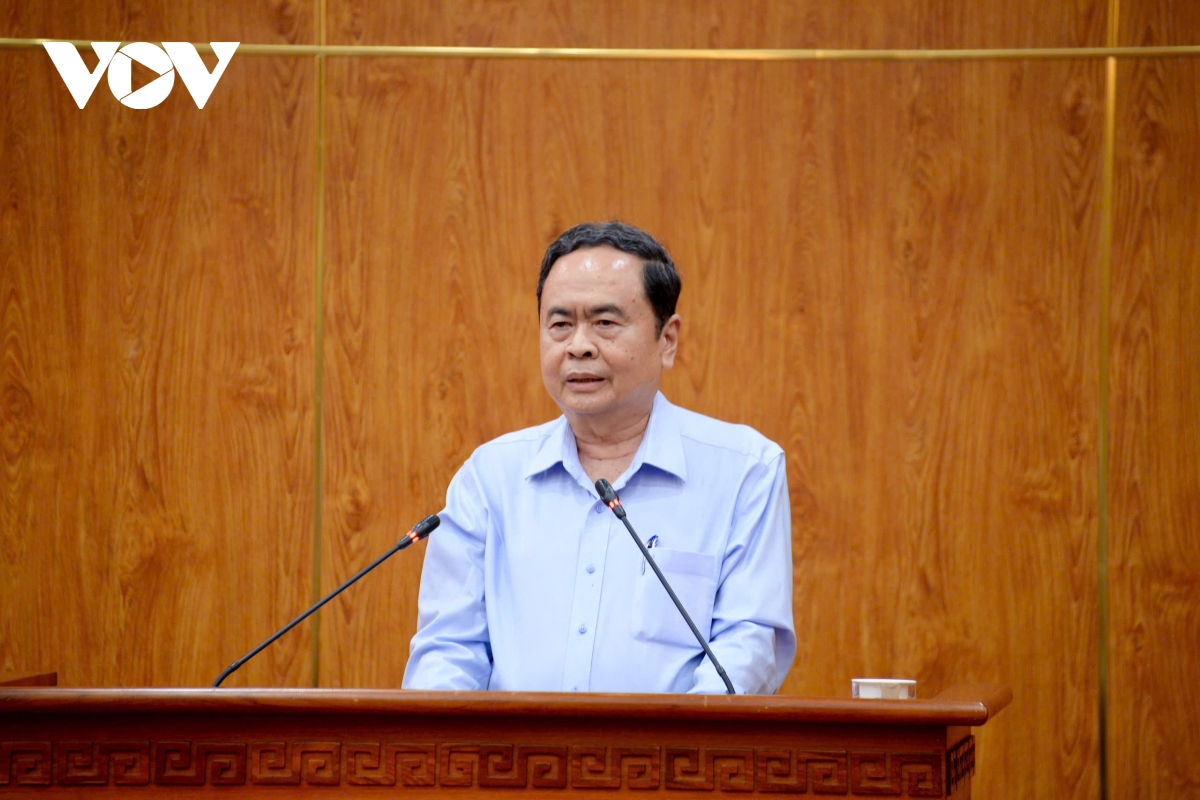 Phát biểu tại cuộc gặp mặt, Chủ tịch Quốc hội Trần Thanh Mẫn bày tỏ vui mừng cùng các đồng chí trong Đoàn công tác được Bộ Chính trị phân công về thăm và chúc Tết Đảng bộ, Chính quyền và Nhân dân TP Cần Thơ và tỉnh Vĩnh Long.