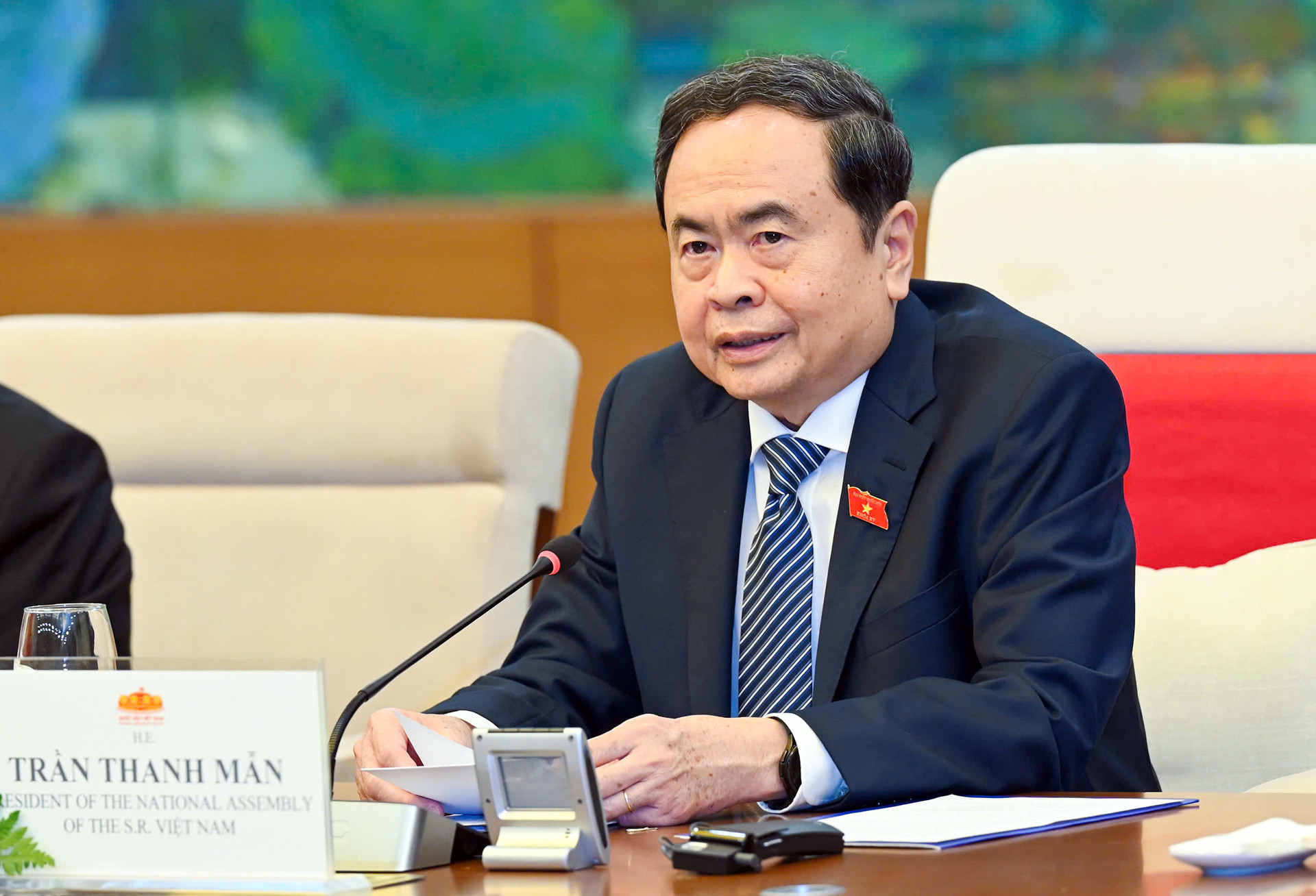 Chủ tịch Quốc hội Trần Thanh Mẫn cảm ơn, mong muốn Chủ tịch Quốc hội Woo Won Shik và Quốc hội Hàn Quốc tiếp tục quan tâm, bảo vệ quyền lợi chính đáng của cộng đồng người Việt Nam tại Hàn Quốc, trong đó có khoảng 100 nghìn gia đình đa văn hóa Việt - Hàn để họ yên tâm sinh sống, học tập và làm việc lâu dài.