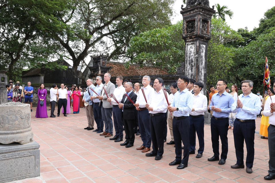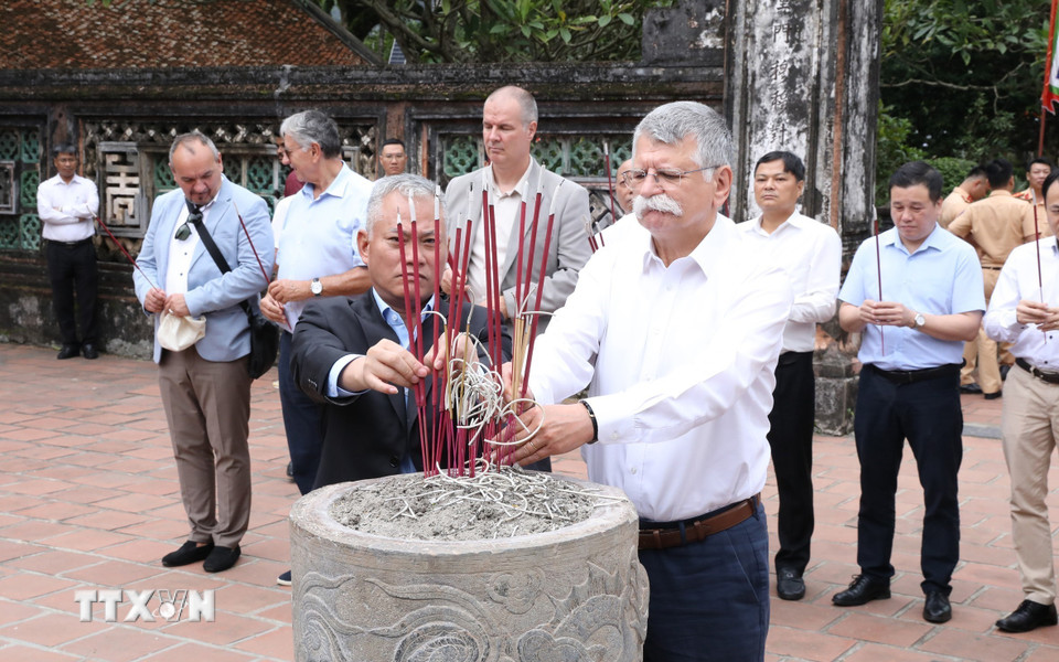 Chủ tịch Quốc hội Hungary Kover Laszlo dâng hương tại Đền thờ Vua Đinh Tiên Hoàng thuộc Khu di tích quốc gia đặc biệt Cố đô Hoa Lư. (Ảnh: Đức Phương/TTXVN)