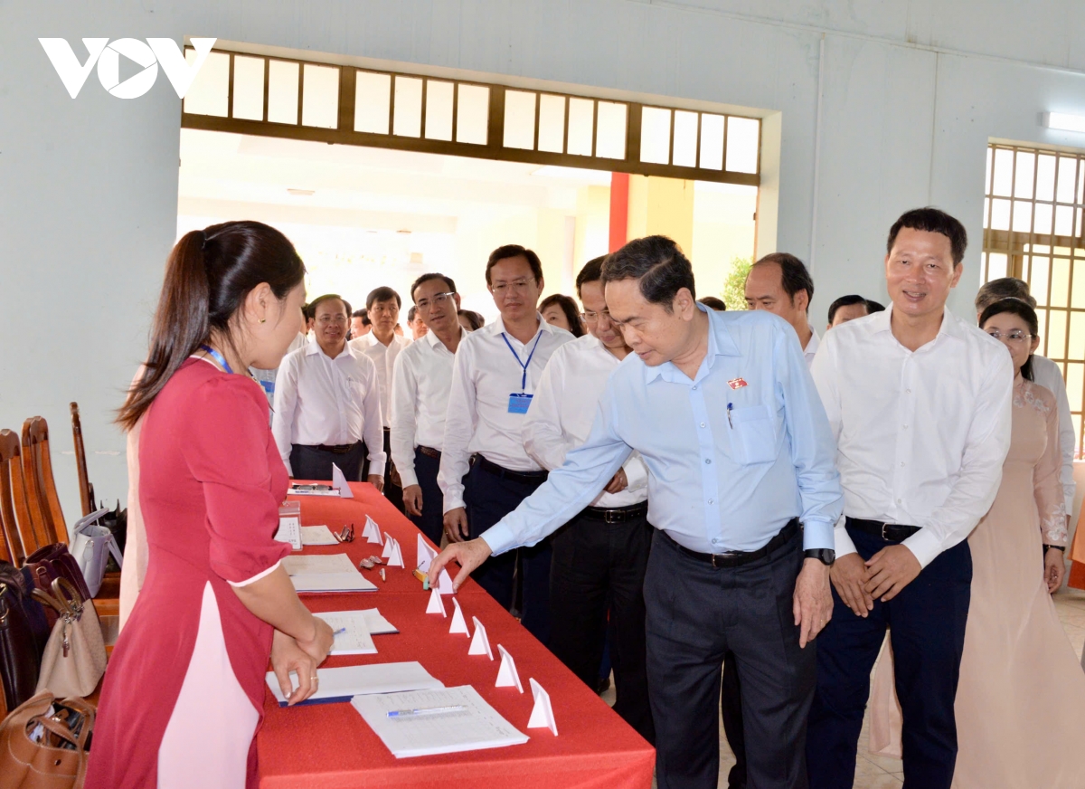 Chủ tịch Quốc hội Trần Thanh Mẫn, Chủ tịch Hội đồng bầu cử Quốc gia kiểm tra công tác bầu cử.