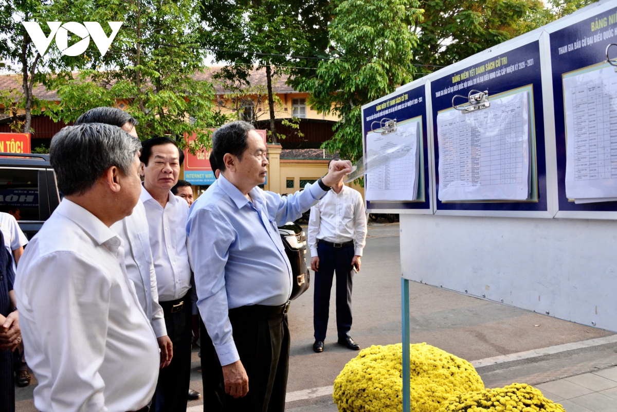 Chủ tịch Quốc hội, Chủ tịch Hội đồng Bầu cử quốc gia Trần Thanh Mẫn và Đoàn công tác khảo sát thực tế tại điểm bầu cử phường Ninh Kiều, TP. Cần Thơ