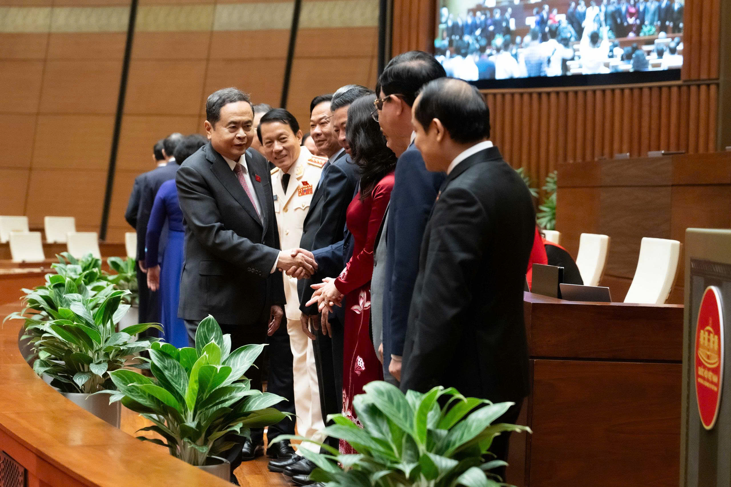 Chủ tịch Quốc hội Trần Thanh Mẫn chúc mừng các thành viên Chính phủ nhiệm kỳ mới. Ảnh: QH