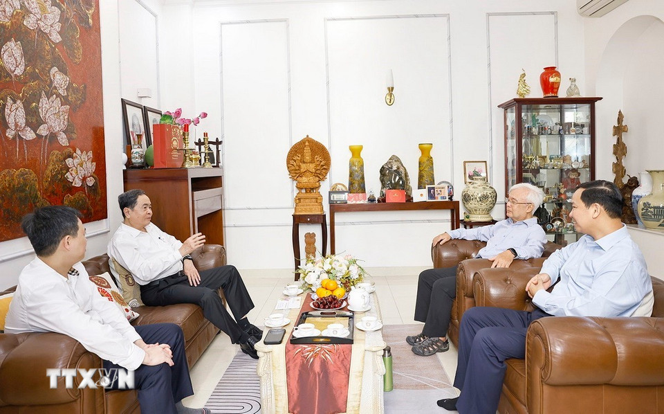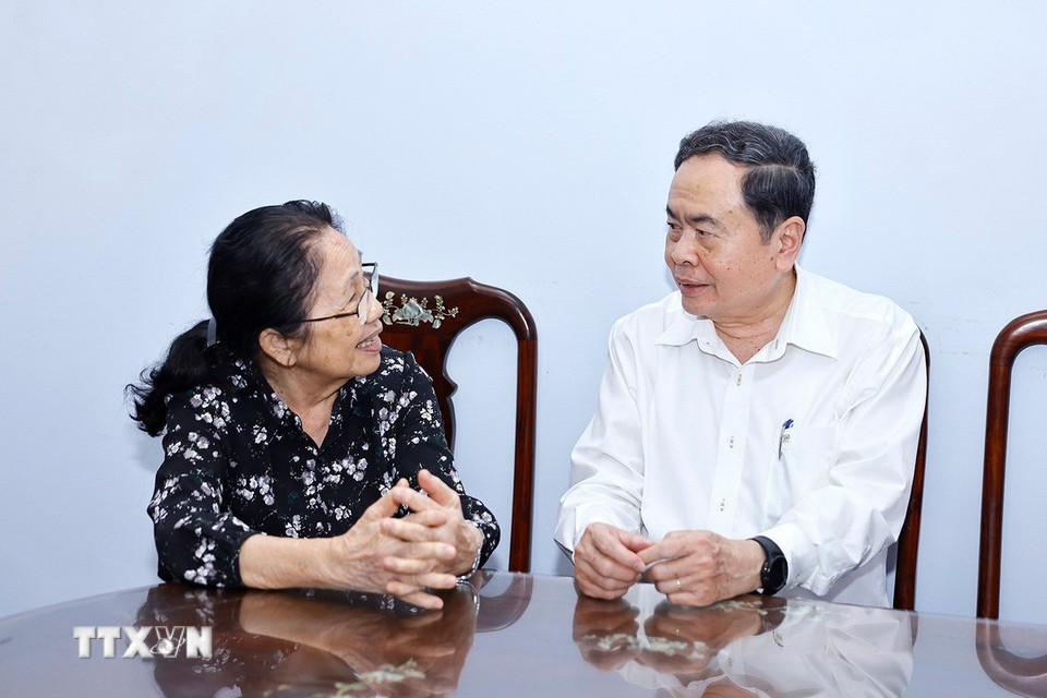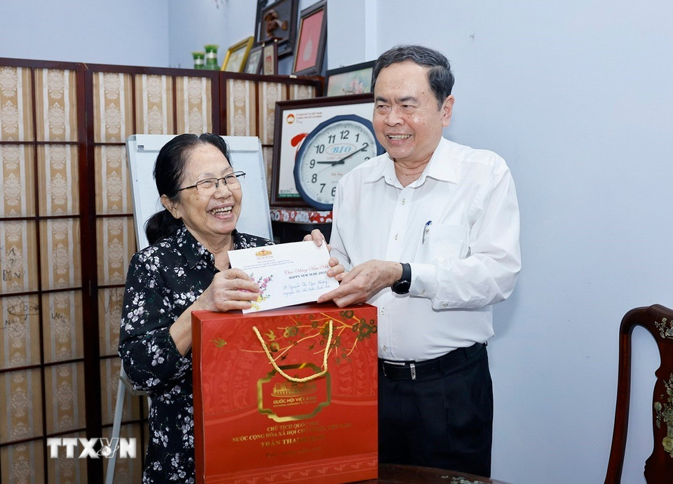 Chủ tịch Quốc hội Trần Thanh Mẫn đến thăm, chúc Tết gia đình đồng chí Trương Mỹ Hoa, nguyên Phó Chủ tịch nước, nguyên Phó Chủ tịch Quốc hội. (Ảnh: Doãn Tấn/TTXVN)