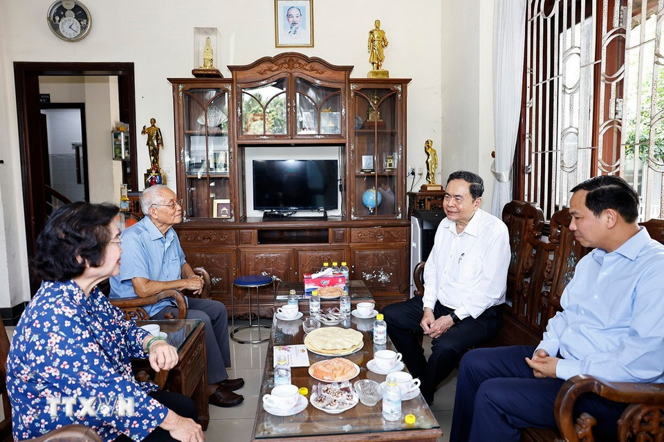 Chủ tịch Quốc hội Trần Thanh Mẫn đến thăm, chúc Tết đồng chí Nguyễn Văn Giàu, nguyên Chủ nhiệm Ủy ban Đối ngoại của Quốc hội. (Ảnh: Doãn Tấn/TTXVN)