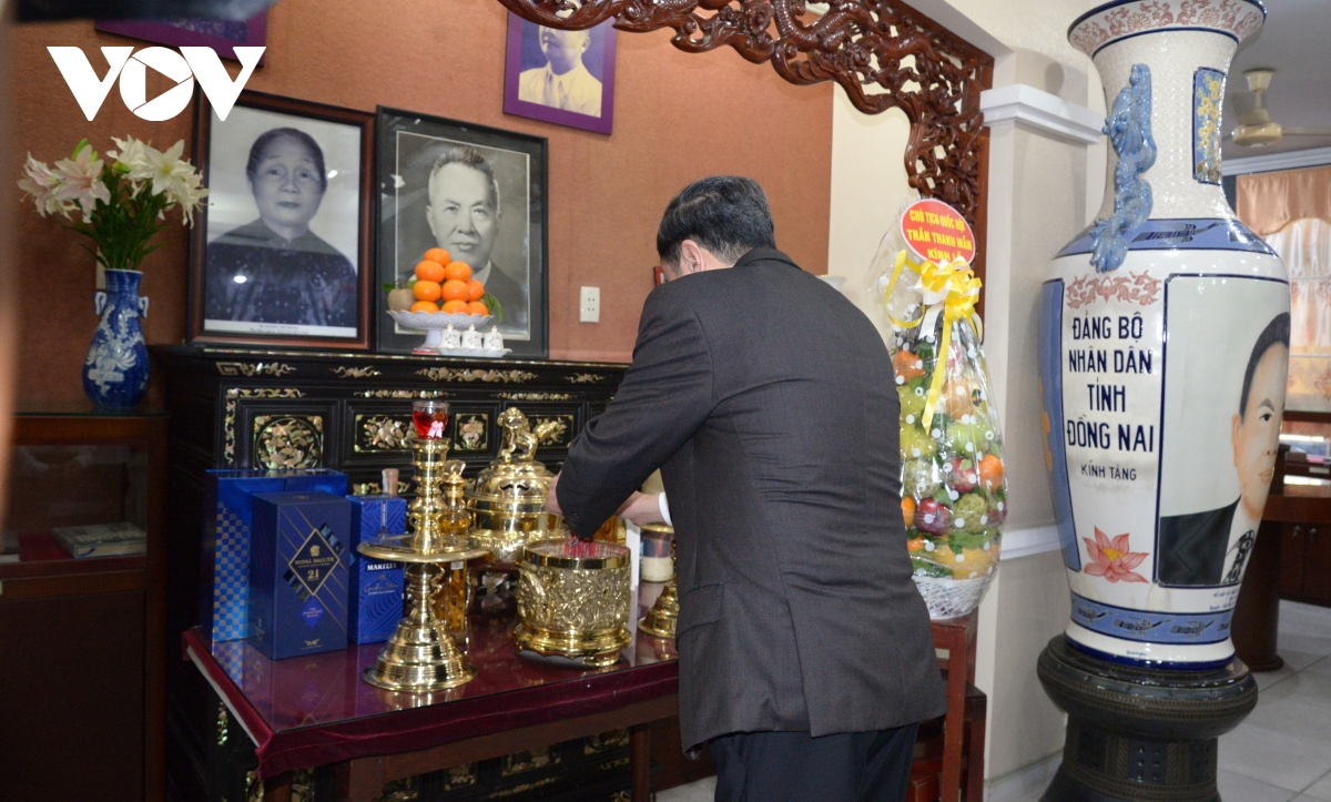 Chủ tịch Quốc hội Trần Thanh Mẫn dâng hương tưởng nhớ cố Chủ tịch Quốc hội Nguyễn Hữu Thọ (ảnh: Hà Khánh)