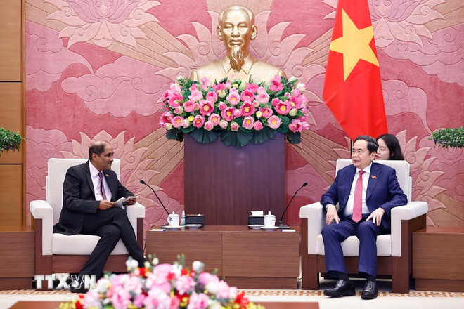 Chủ tịch Quốc hội Trần Thanh Mẫn tiếp Đại sứ Indonesia Denny Abdi. (Ảnh: Doãn Tấn/TTXVN)