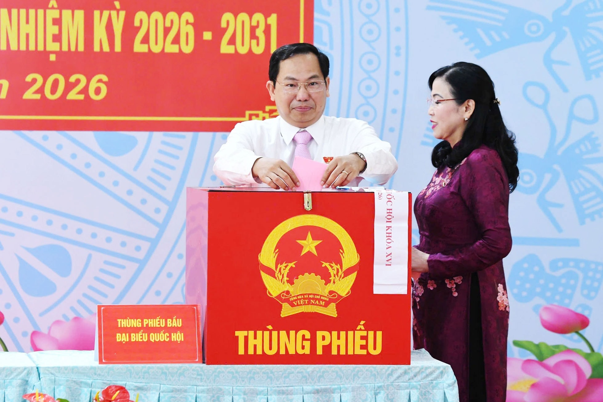 Ngay sau đó, Chủ tịch Quốc hội Trần Thanh Mẫn, Bí thư Thành ủy TP. Hồ Chí Minh Trần Lưu Quang, Tổng Thư ký Quốc hội, Chủ nhiệm Văn phòng Quốc hội Lê Quang Mạnh - Chánh Văn phòng Hội đồng Bầu cử quốc gia; Chủ nhiệm Ủy ban Công tác đại biểu Nguyễn Hữu Đông - Ủy viên Hội đồng Bầu cử quốc gia; Chủ nhiệm Ủy ban Khoa học, Công nghệ và Môi trường Nguyễn Thanh Hải cùng các cử tri tại Khu vực bỏ phiếu số 14 của xã Hóc Môn đã thực hiện quyền công dân, bỏ phiếu bầu đại biểu Quốc hội khóa XVI và đại biểu HĐND các cấp nhiệm kỳ 2026 - 2031.