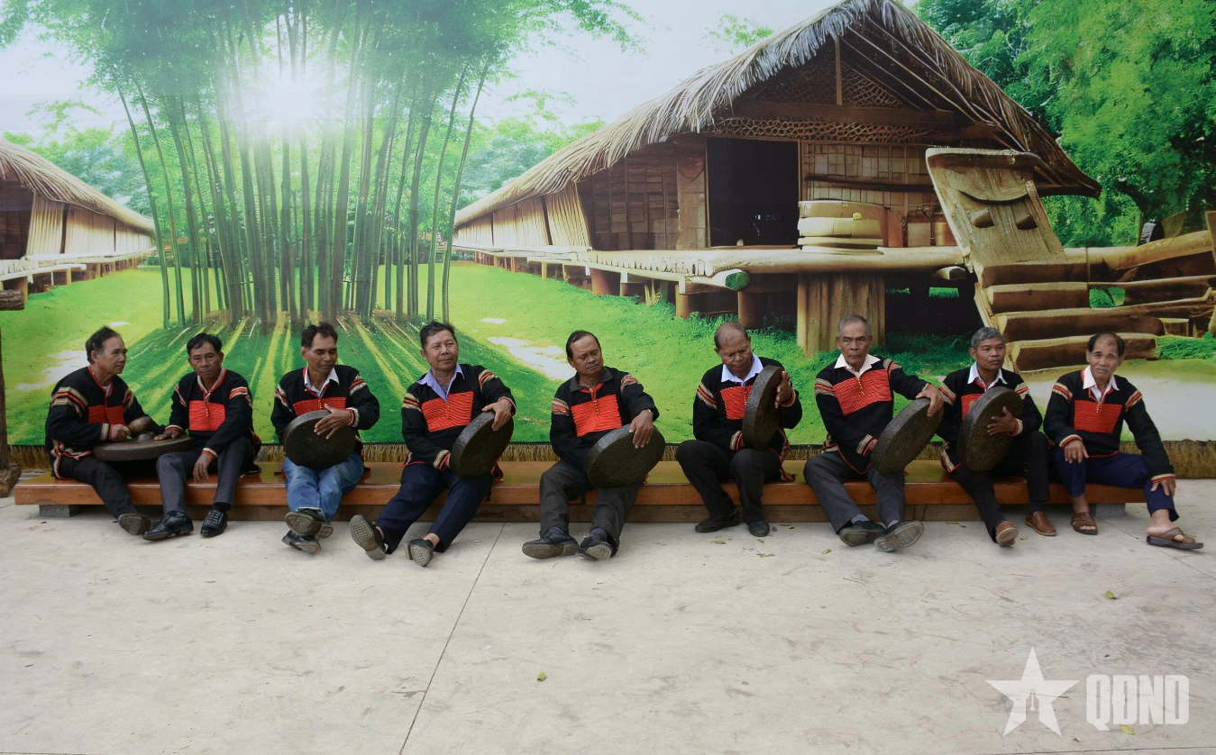Đội cồng chiêng buôn Tuôr biểu diễn chào mừng các cử tri đến tham gia bầu cử.