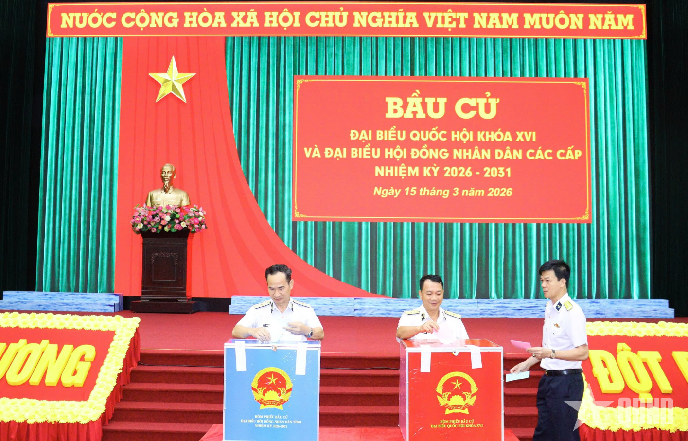 Sáng 15-3, tại khu vực bỏ phiếu đặt tại Hội trường Học viện Hải quân, cán bộ, giảng viên, nhân viên, học viên, chiến sĩ trong toàn Học viện đã tham gia bầu cử Bầu cử đại biểu Quốc hội Việt Nam khóa XVI và đại biểu Hội đồng nhân dân các cấp nhiệm kỳ 2026-2031.