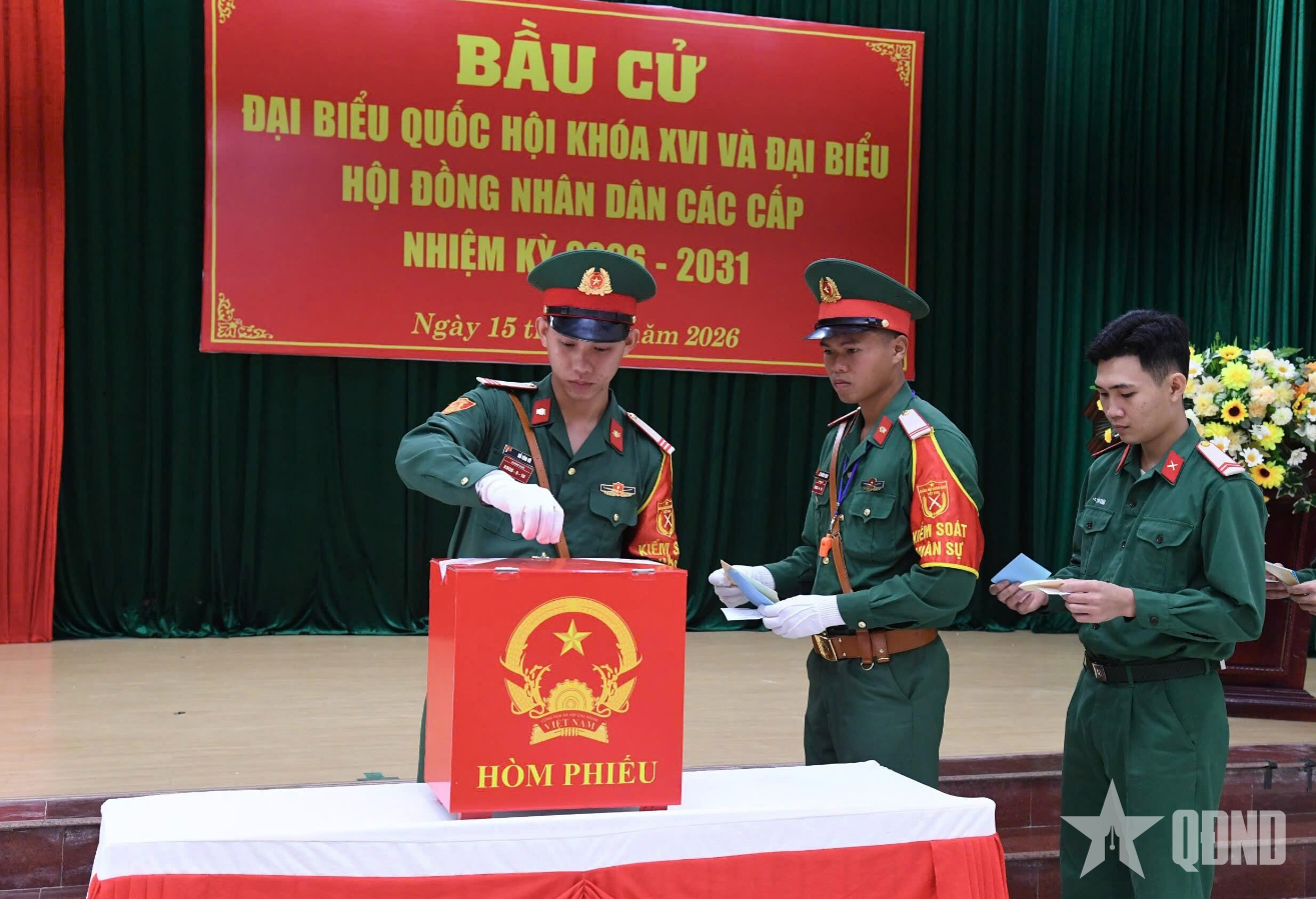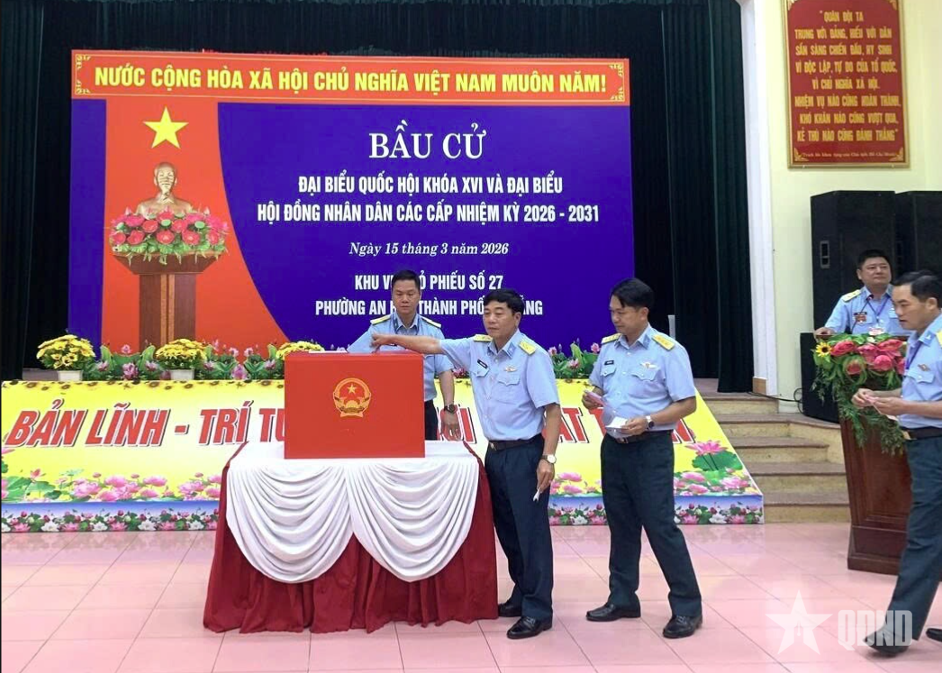 Sáng 15-3, cán bộ, chiến sĩ Trung đoàn Pháo phòng không 224 (Sư đoàn Phòng không 375, Quân chủng Phòng không - Không quân) thực hiện bầu cử đại biểu Quốc hội khóa XVI và đại biểu HĐND các cấp nhiệm kỳ 2026-2031 tại khu vực bỏ phiếu số 27 phường An Hải (TP Đà Nẵng).