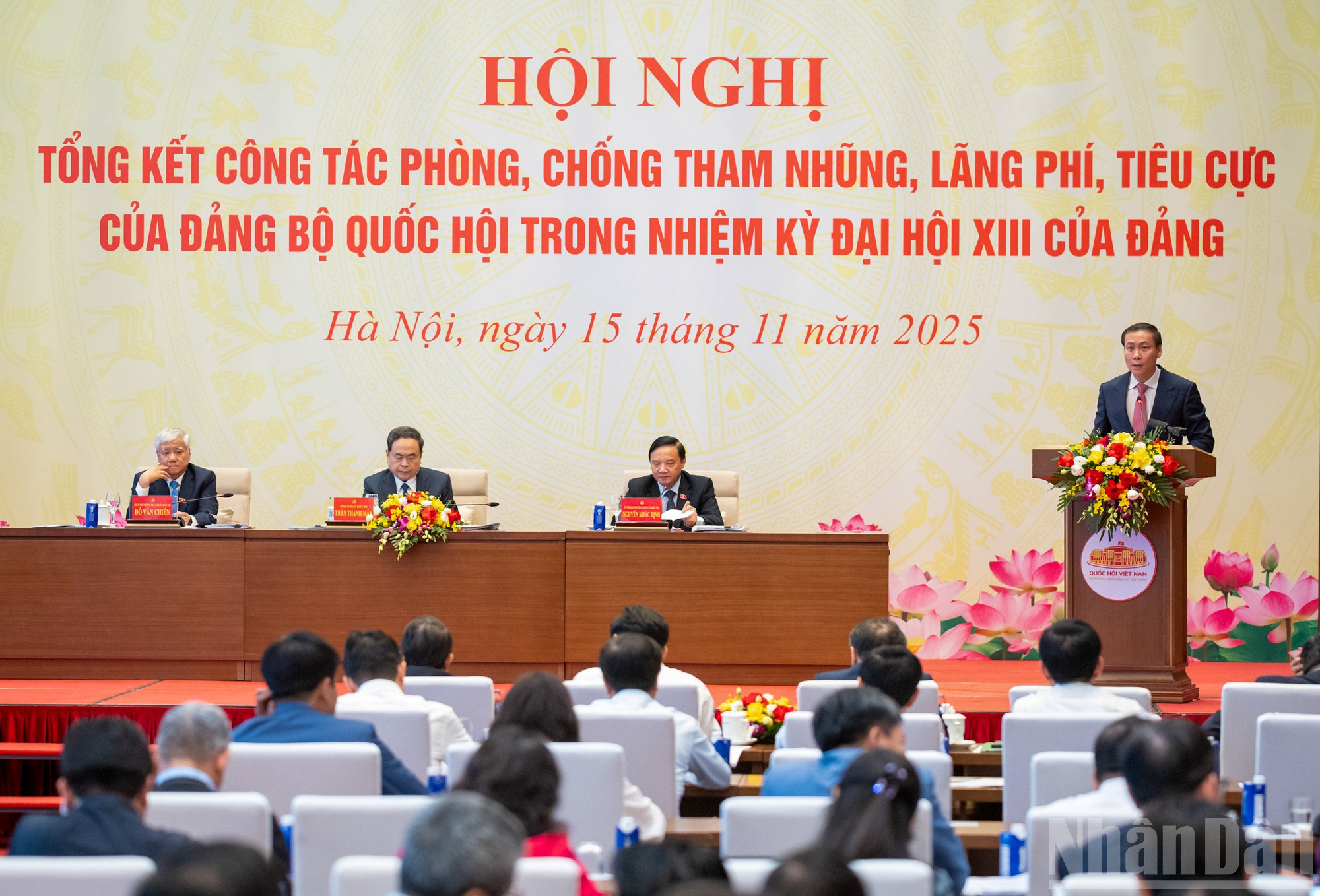 Hội nghị tổng kết công tác phòng, chống tham nhũng, lãng phí, tiêu cực của Đảng bộ Quốc hội trong nhiệm kỳ Đại hội lần thứ XIII của Đảng. (Ảnh: DUY LINH)