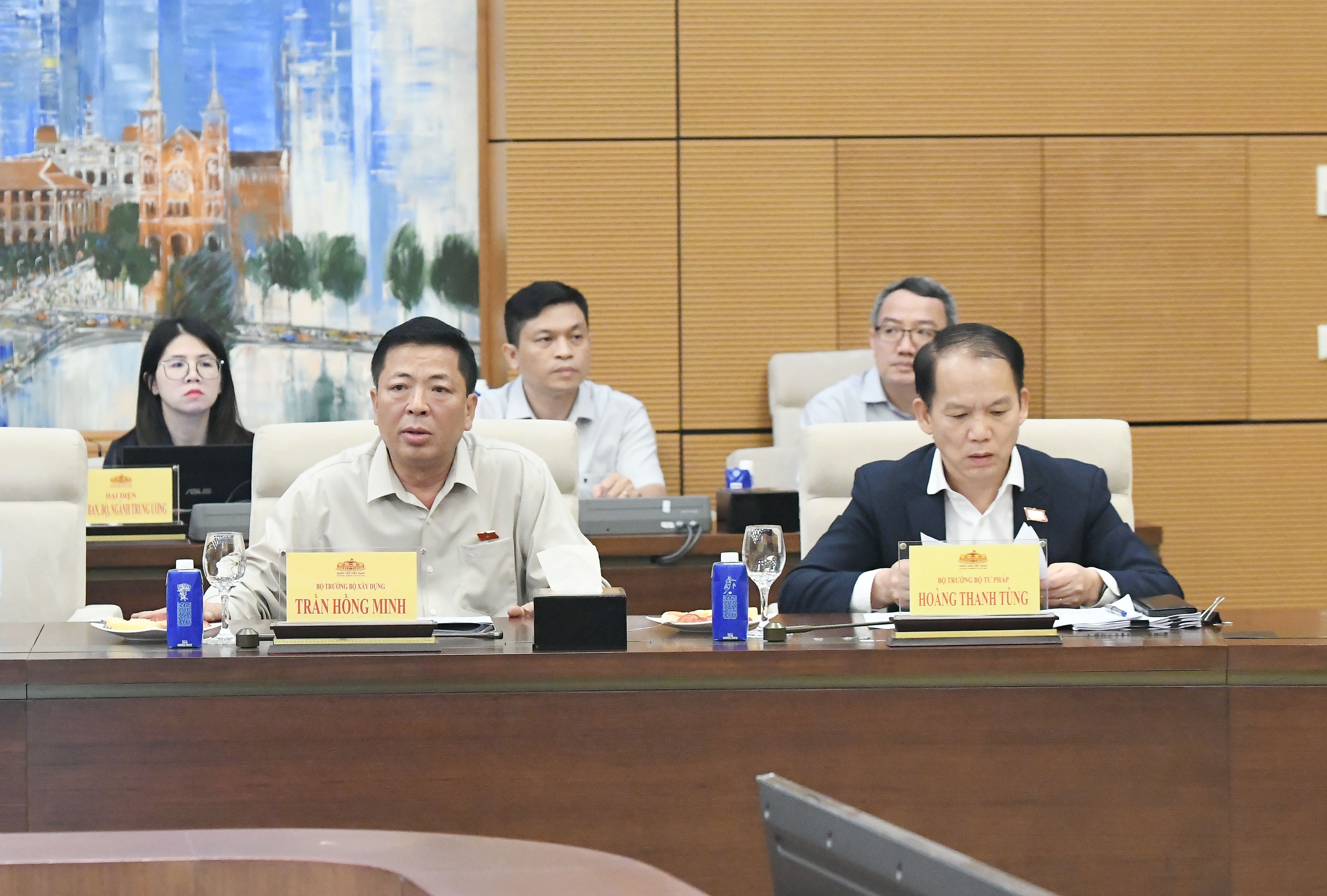 Bộ trưởng Bộ Tư pháp Hoàng Thanh Tùng, Bộ trưởng Bộ Xây dựng Trần Hồng Minh dự phiên họp