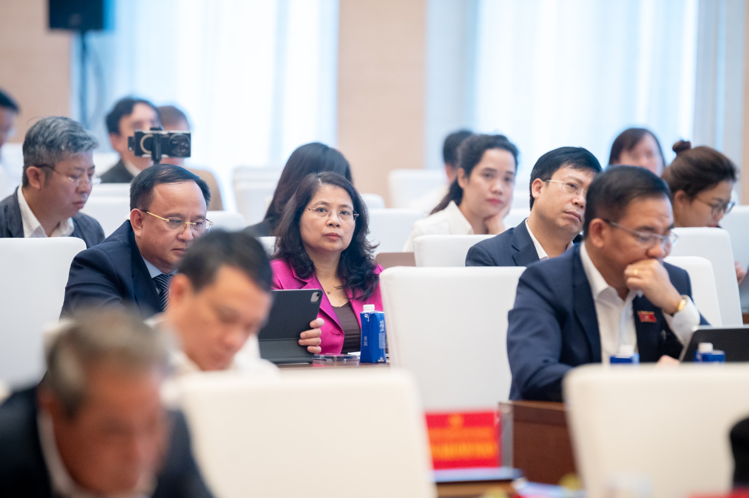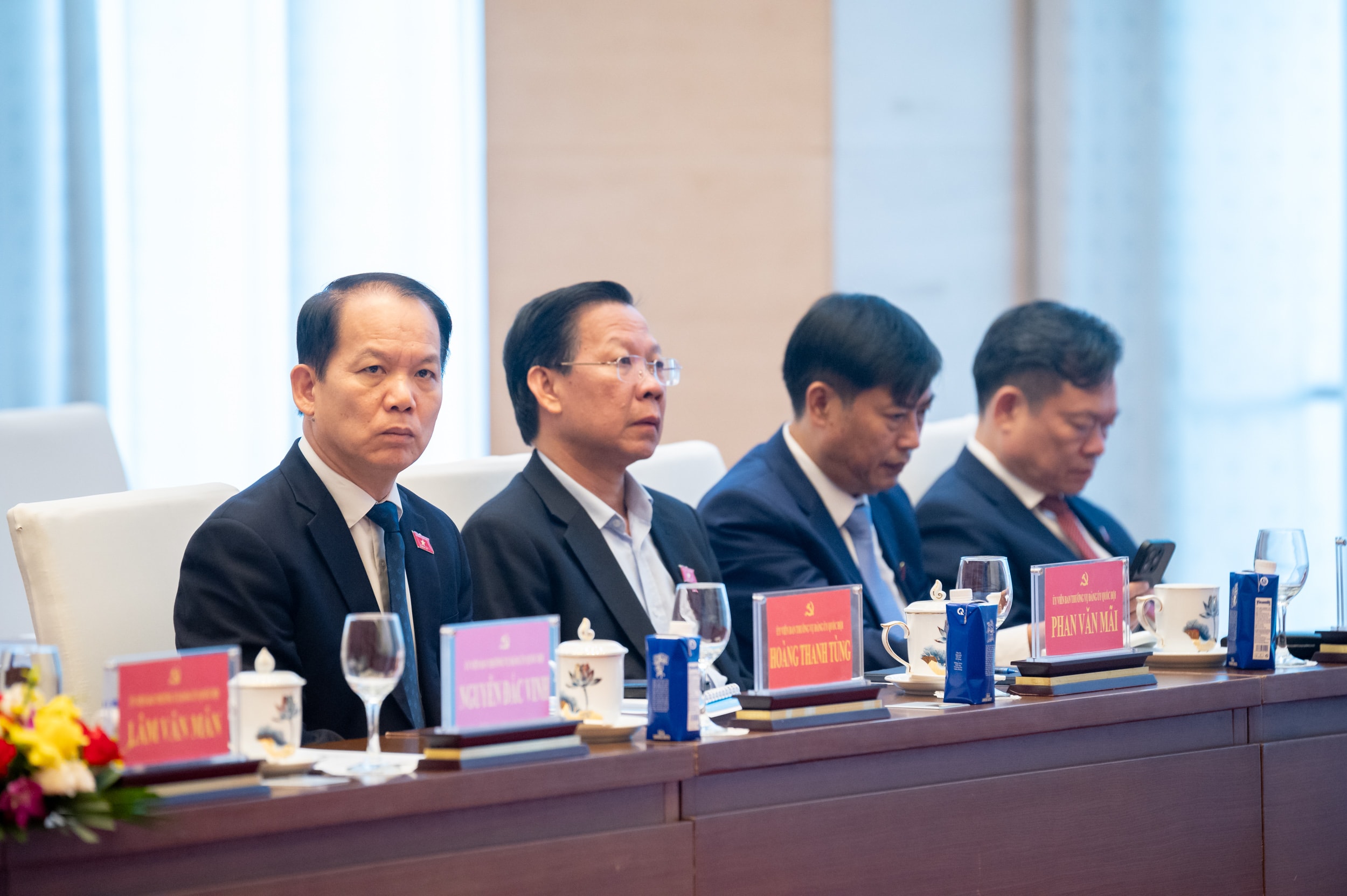 "Chúng ta là cơ quan quyền lực Nhà nước cao nhất của nước Cộng hòa Xã hội Chủ nghĩa Việt Nam của dân, do dân và vì dân. Các đồng chí phải làm việc một cách bài bản, khoa học và phải hết sức nghiêm túc, tự mình giữ mình, chúng ta phải bảo đảm kỷ luật, kỷ cương nghiêm minh", Bí thư Đảng ủy Quốc hội nêu rõ.