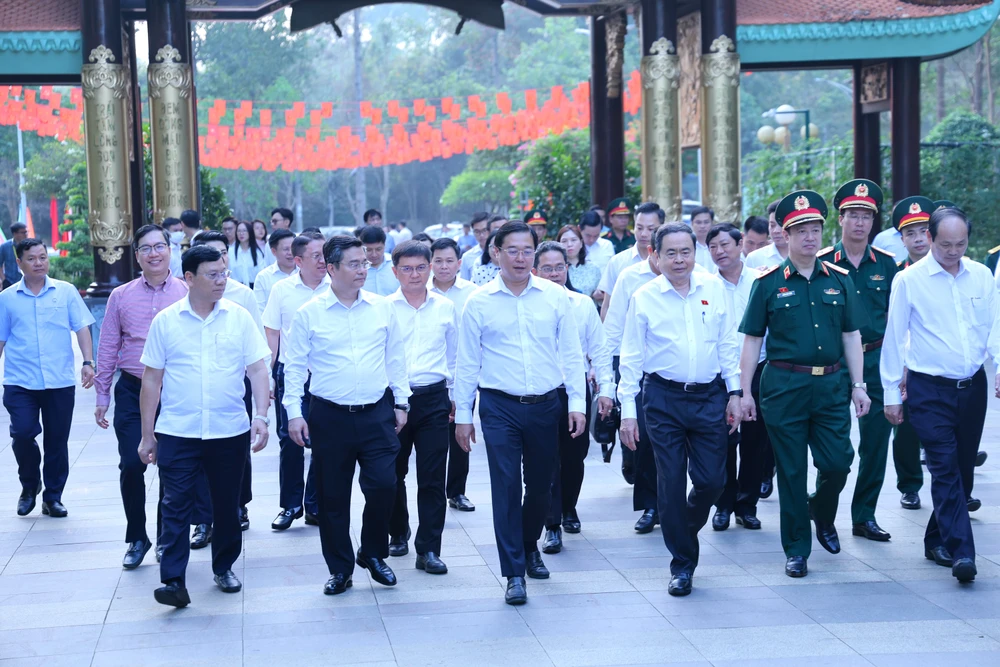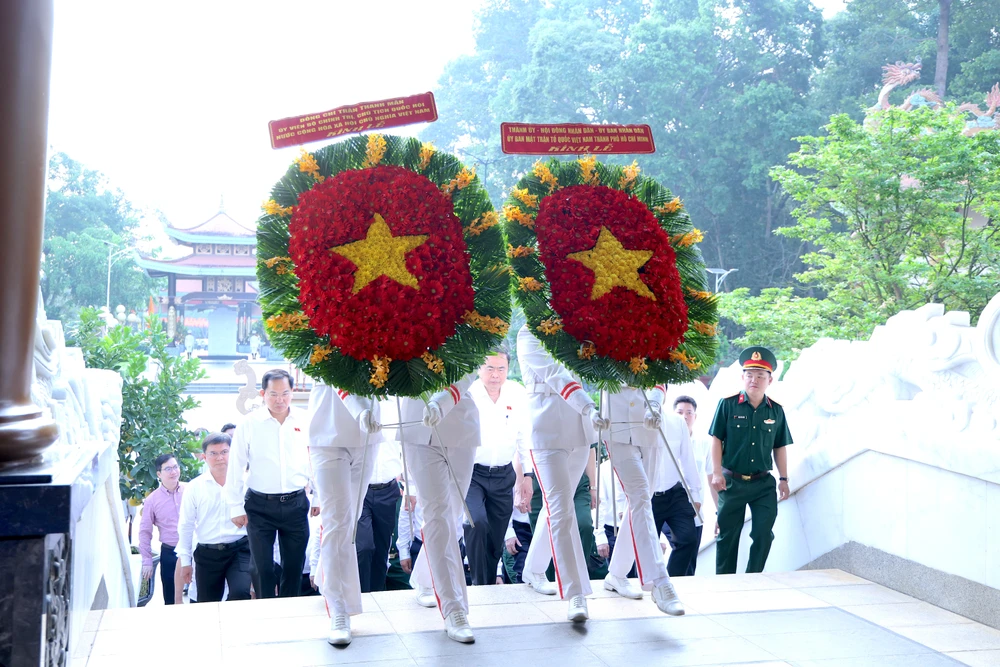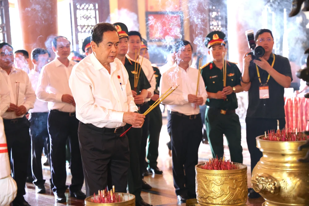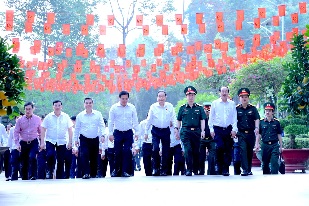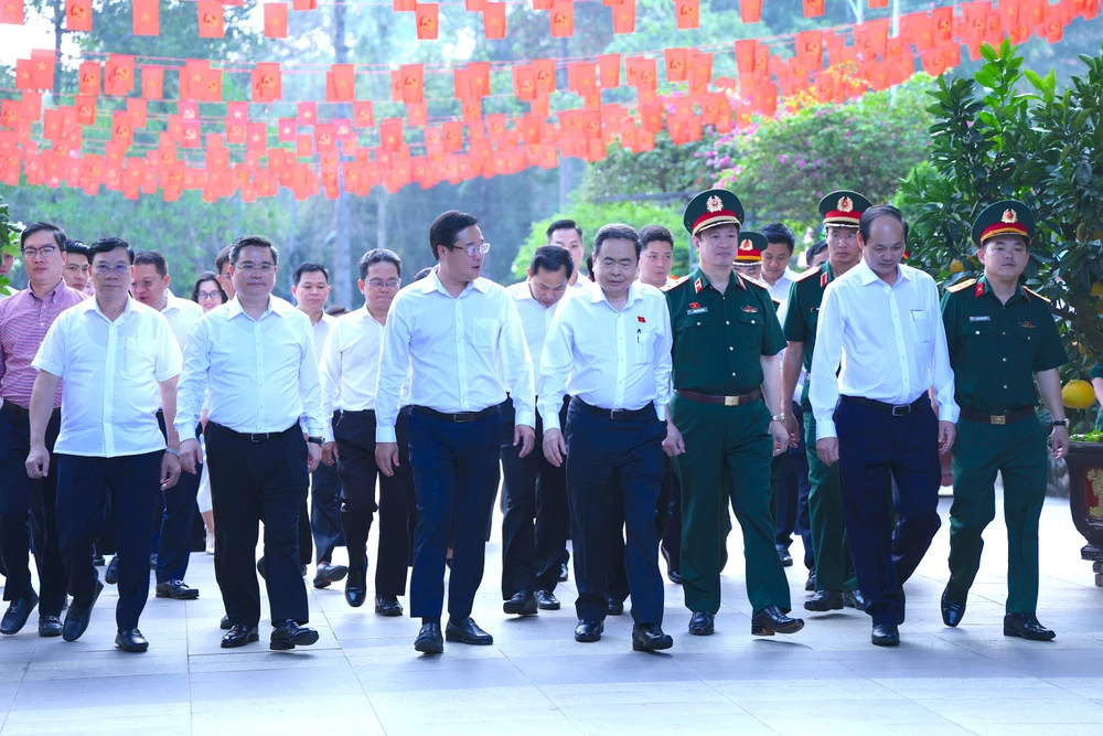 Ủy viên Bộ Chính trị, Chủ tịch Quốc hội Trần Thanh Mẫn cùng lãnh đạo Trung ương, lãnh đạo TP.HCM đã dâng hương tại đền Bến Dược, xã Củ Chi. Ảnh: LÊ THOA
