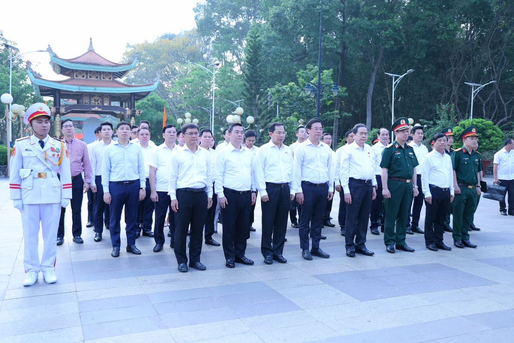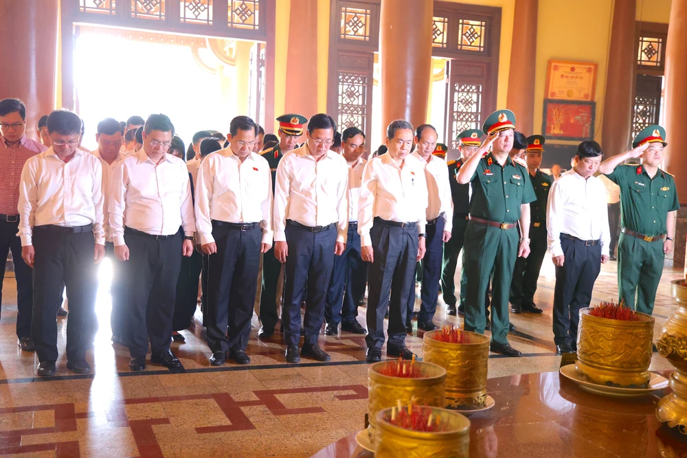 Trước anh linh Chủ tịch Hồ Chí Minh, hương linh các mẹ Việt Nam anh hùng, anh hùng lực lượng vũ trang nhân dân, anh hùng liệt sĩ…, đoàn lãnh đạo đã dâng lên vòng hoa tươi thắm và những nén hương thơm. Kính cẩn nghiêng mình tỏ lòng biết ơn vô hạn đối với đồng bào, cán bộ, chiến sĩ đã chiến đấu hy sinh anh dũng vì sự nghiệp giải phóng dân tộc, xây dựng và bảo vệ Tổ quốc.