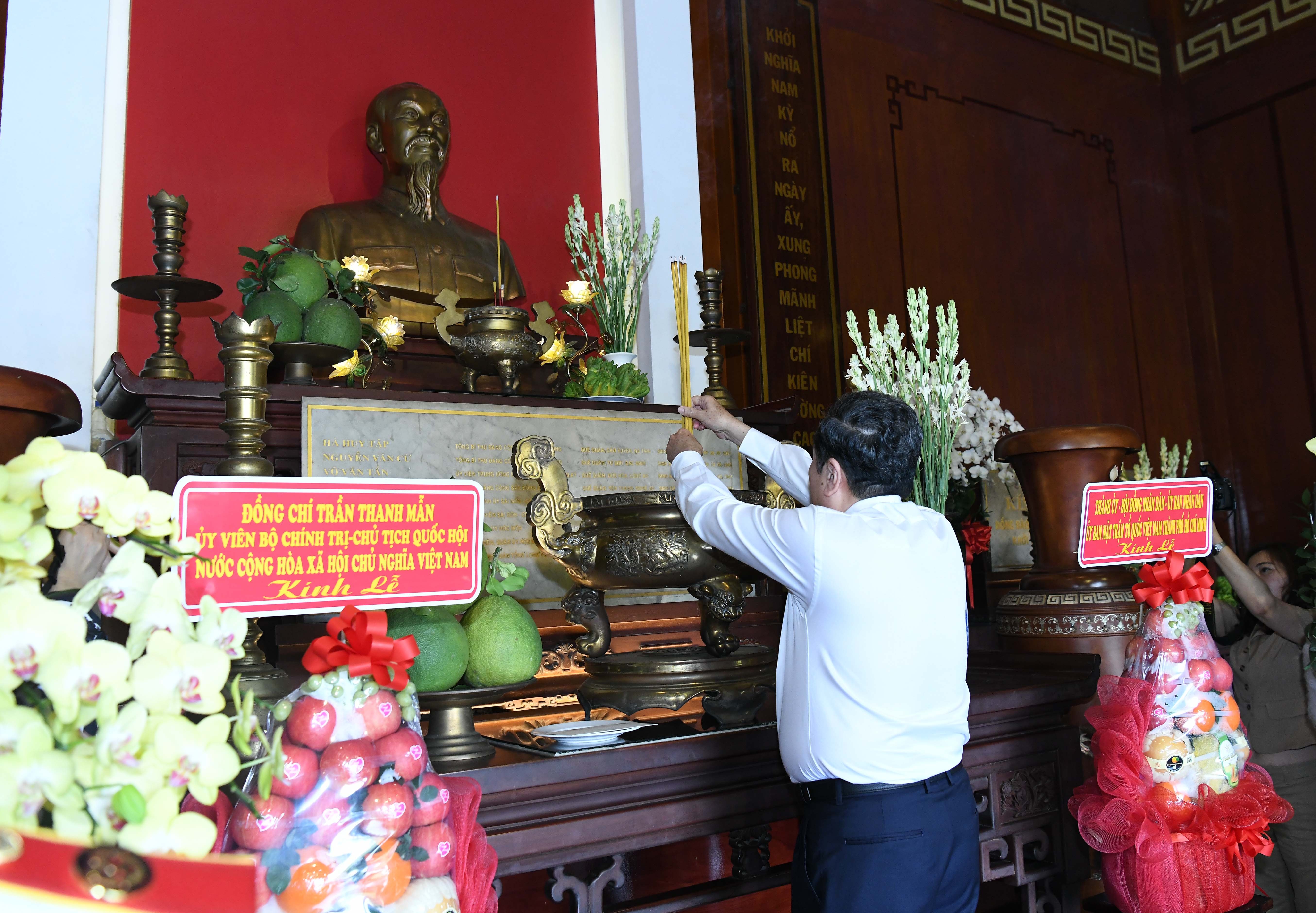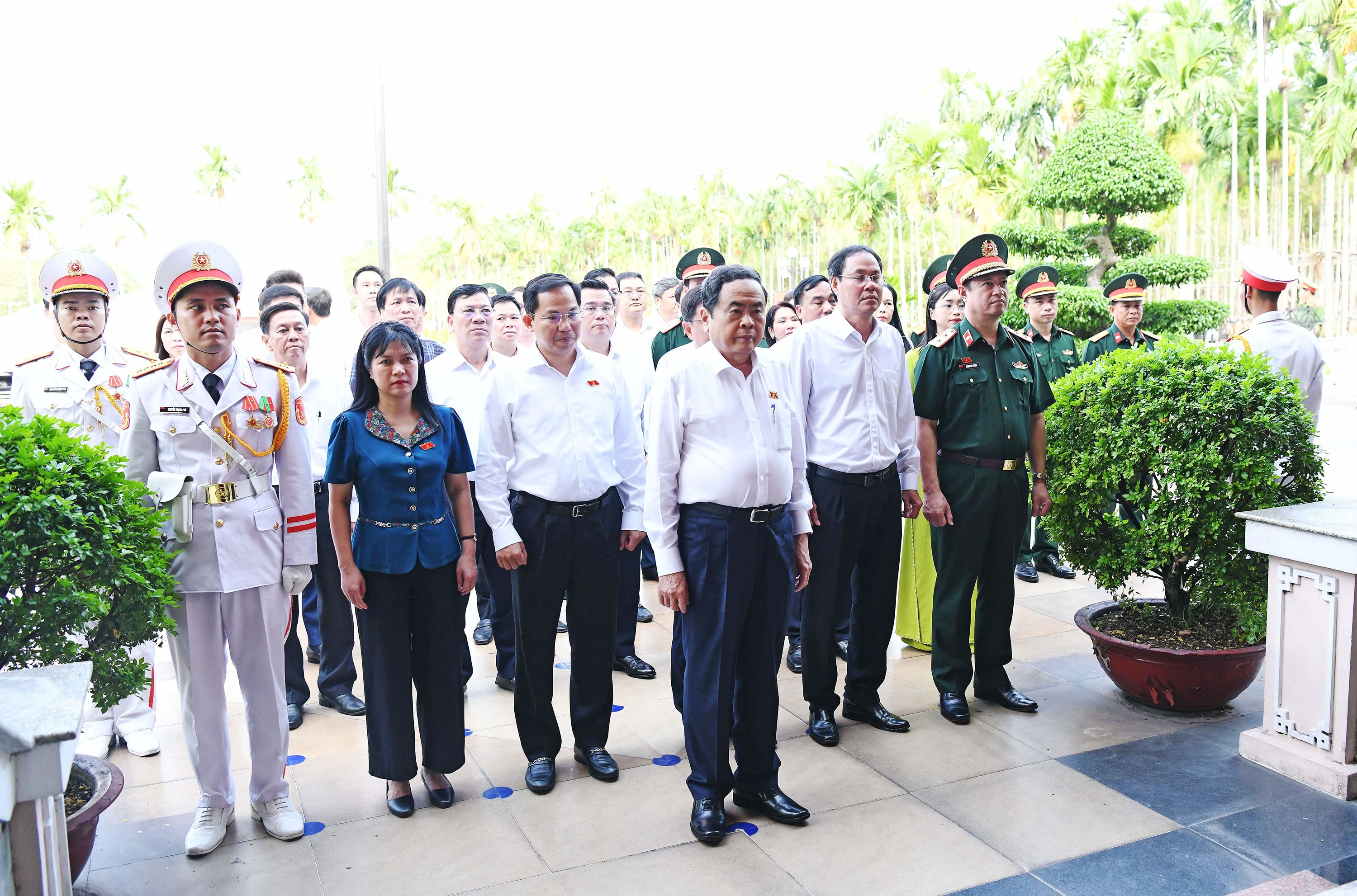 Trong không khí trang nghiêm, Chủ tịch Quốc hội Trần Thanh Mẫn và Đoàn công tác đã dâng hoa, dâng hương và dành phút mặc niệm tưởng nhớ Chủ tịch Hồ Chí Minh, các đồng chí lãnh đạo Trung ương Đảng, các chiến sĩ đồng bào đã anh dũng hy sinh vì sự nghiệp cách mạng của Đảng và dân tộc.