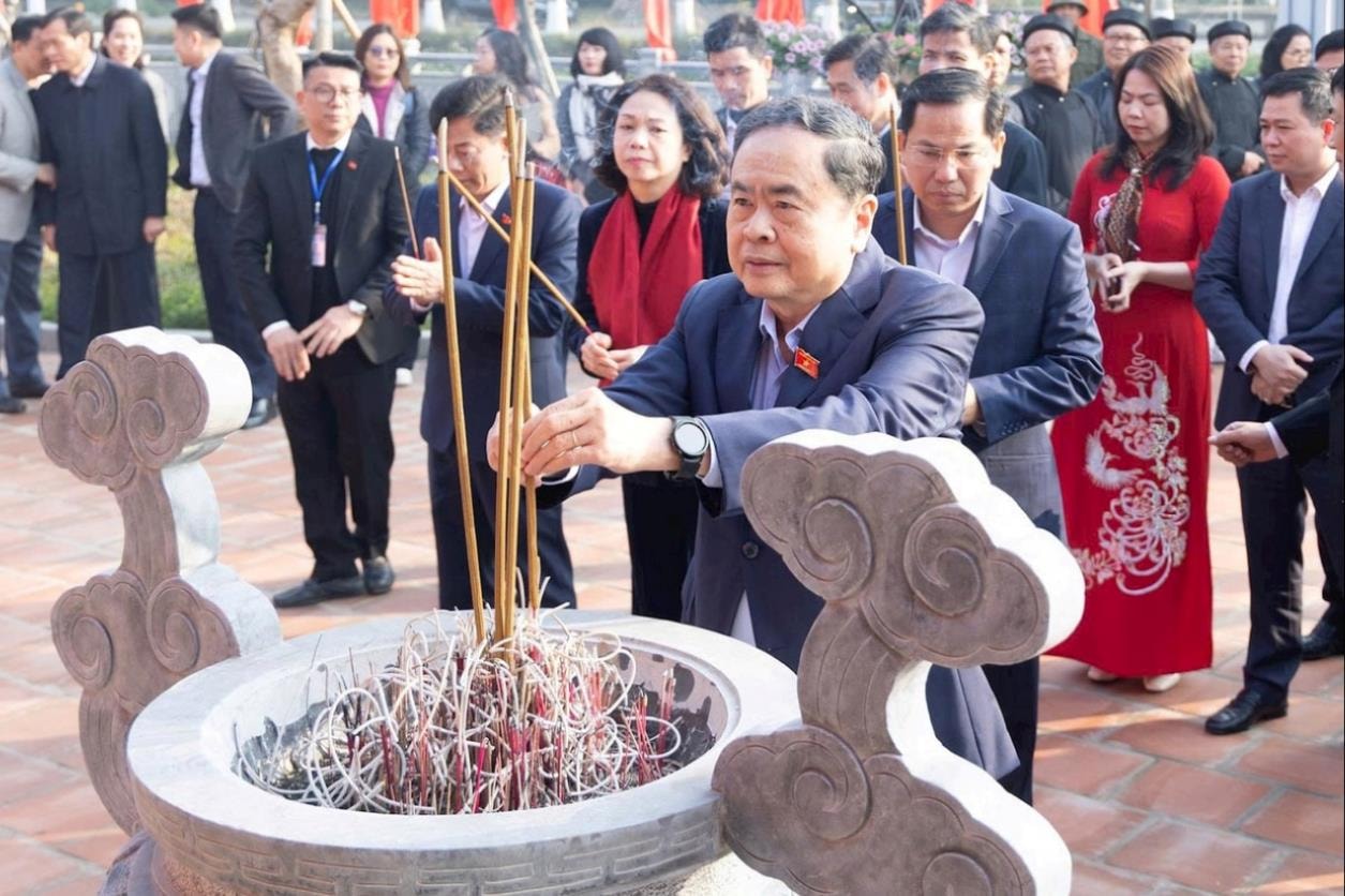 Cùng đoàn dâng hương, có các đồng chí: Nguyễn Hữu Đông, Ủy viên Trung ương Đảng, Ủy viên Ủy ban Thường vụ Quốc hội, Chủ nhiệm Ủy ban Công tác đại biểu, Phó Trưởng ban Tổ chức Trung ương và các cơ quan thuộc Quốc hội; Vũ Thu Hà, Phó Chủ tịch UBND thành phố Hà Nội.