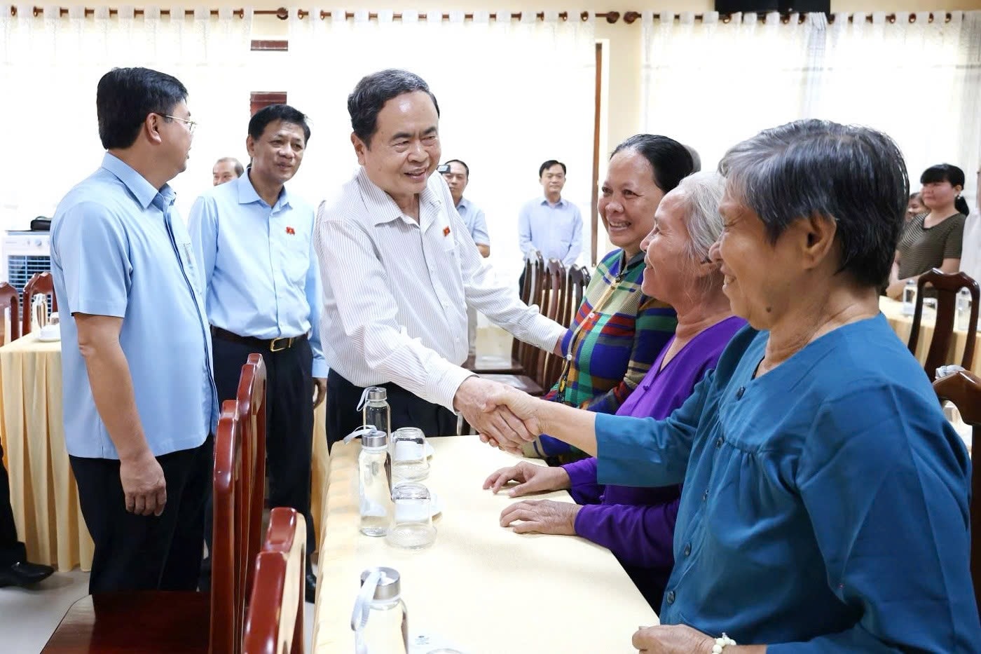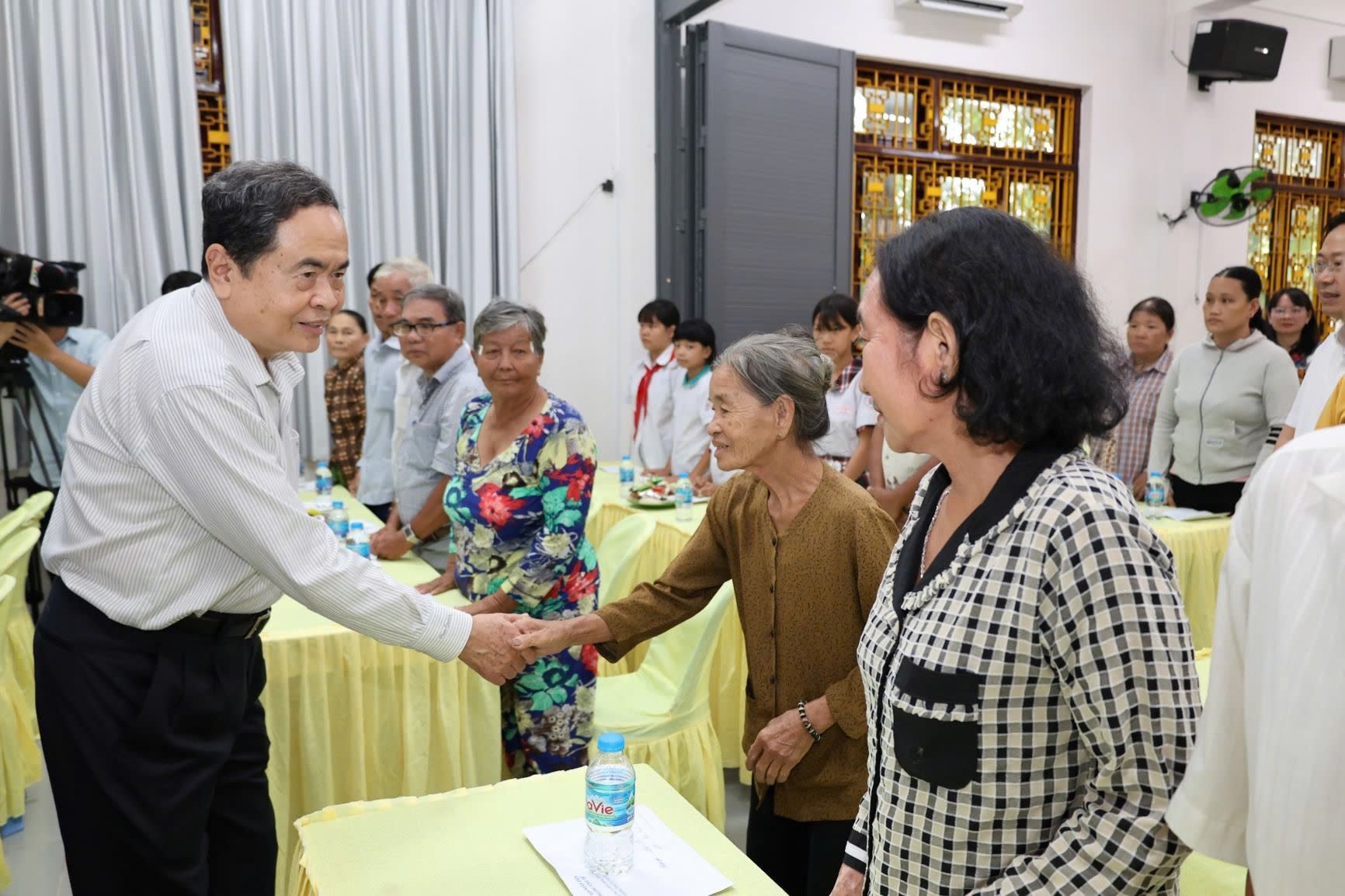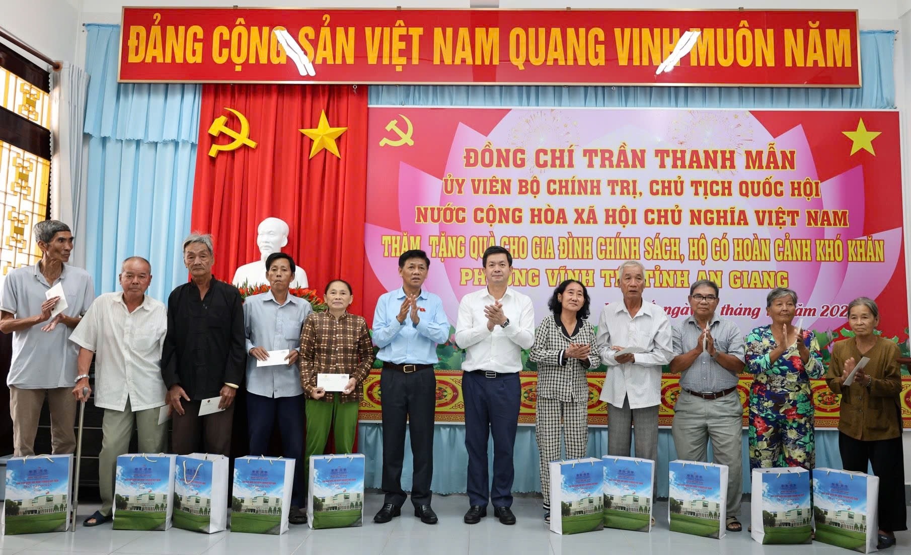 Chủ tịch Quốc hội Trần Thanh Mẫn thăm hỏi gia đình chính sách, người có công, đồng bào dân tộc nghèo tại phường Vĩnh Tế và phường Châu Đốc, tỉnh An Giang. Ảnh: Hải Hành
