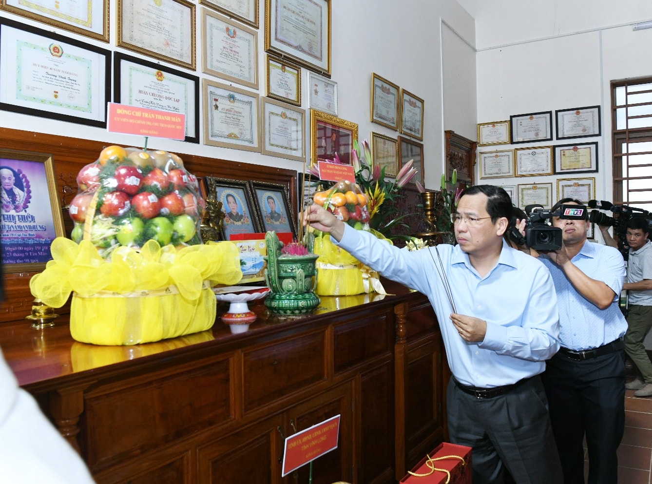Tổng Thư ký Quốc hội, Chủ nhiệm Văn phòng Quốc hội Lê Quang Mạnh thắp hương tưởng nhớ cố Phó Thủ tướng Chính phủ Trương Vĩnh Trọng