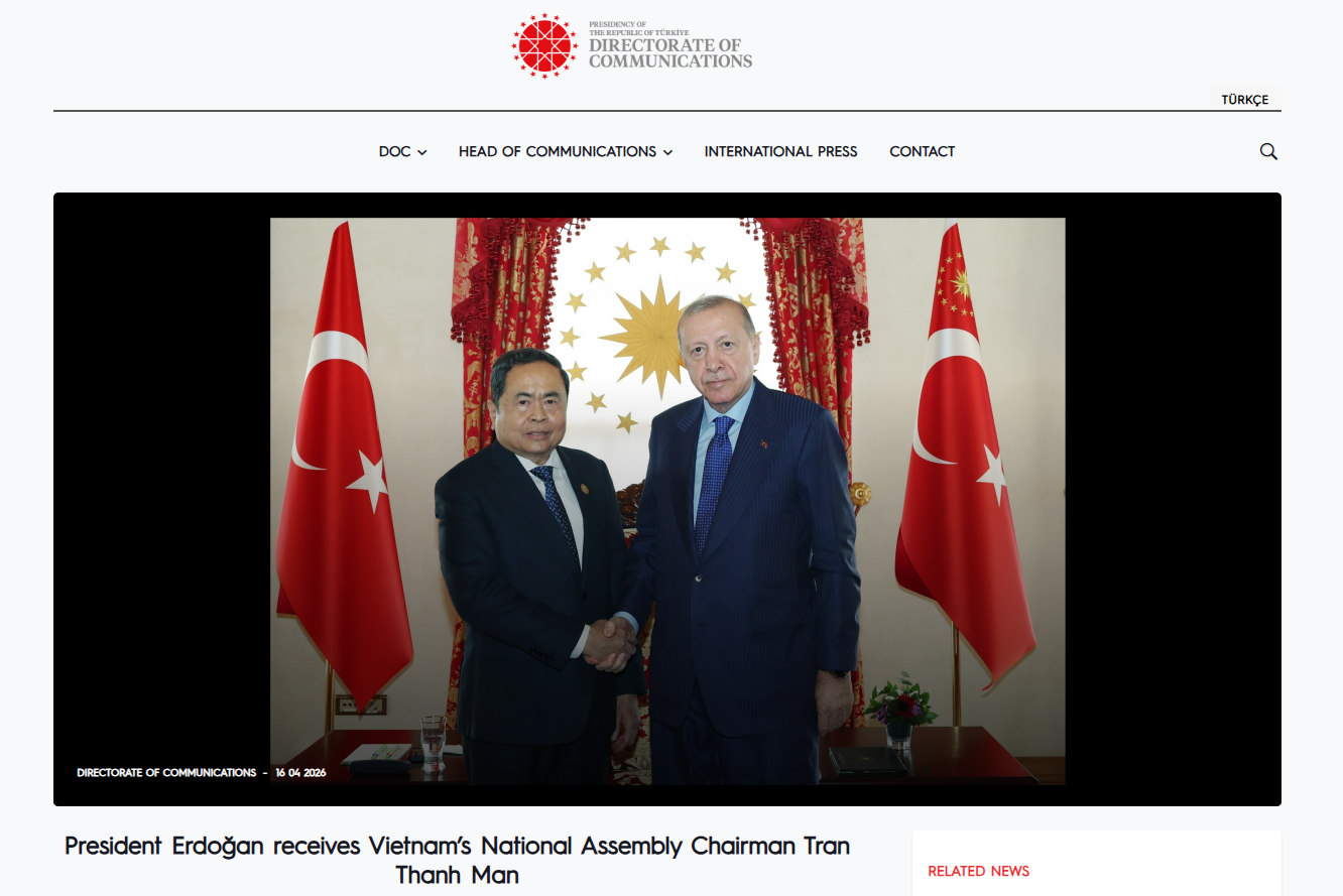 Cục Truyền thông Phủ Tổng thống Thổ Nhĩ Kỳ đăng bài với tiêu đề “Tổng thống Erdoğan hội kiến Chủ tịch Quốc hội Việt Nam Trần Thanh Mẫn” cho biết, Tổng thống Erdoğan đã tiếp Chủ tịch Quốc hội Việt Nam cùng đoàn đại biểu cấp cao Việt Nam tại Văn phòng Tổng thống