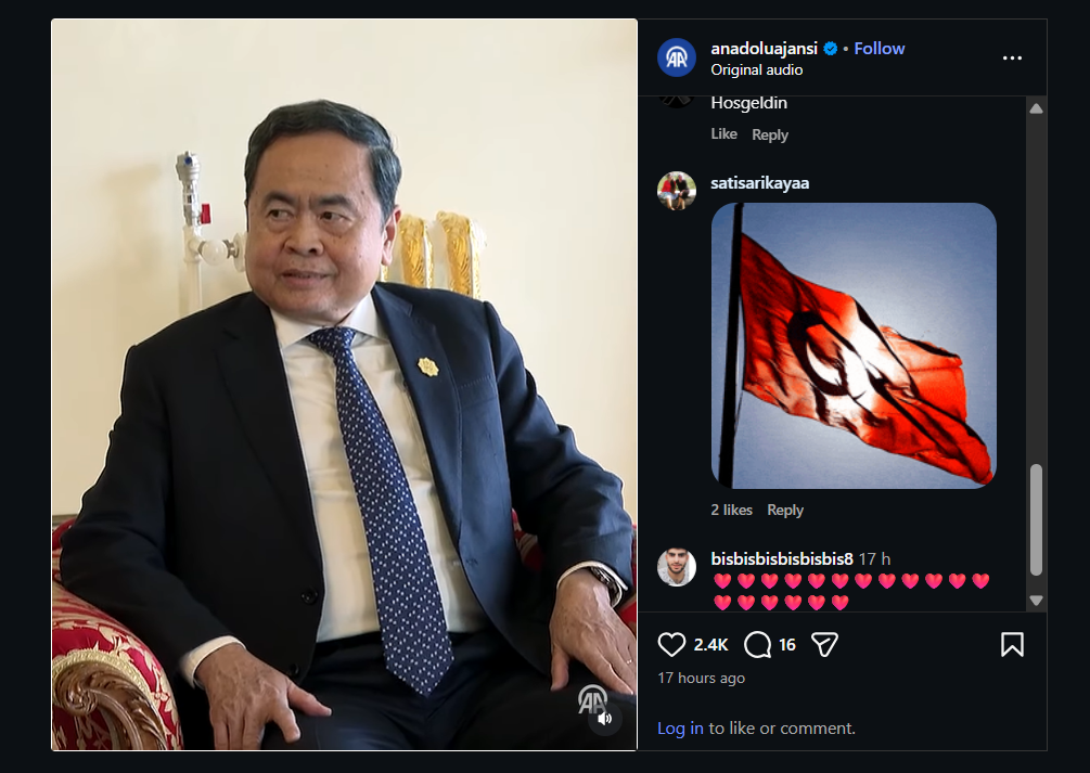 Hình ảnh Chủ tịch Quốc hội Trần Thanh Mẫn được đăng tải trên tài khoản Instagram của hãng thông tấn Anadolu