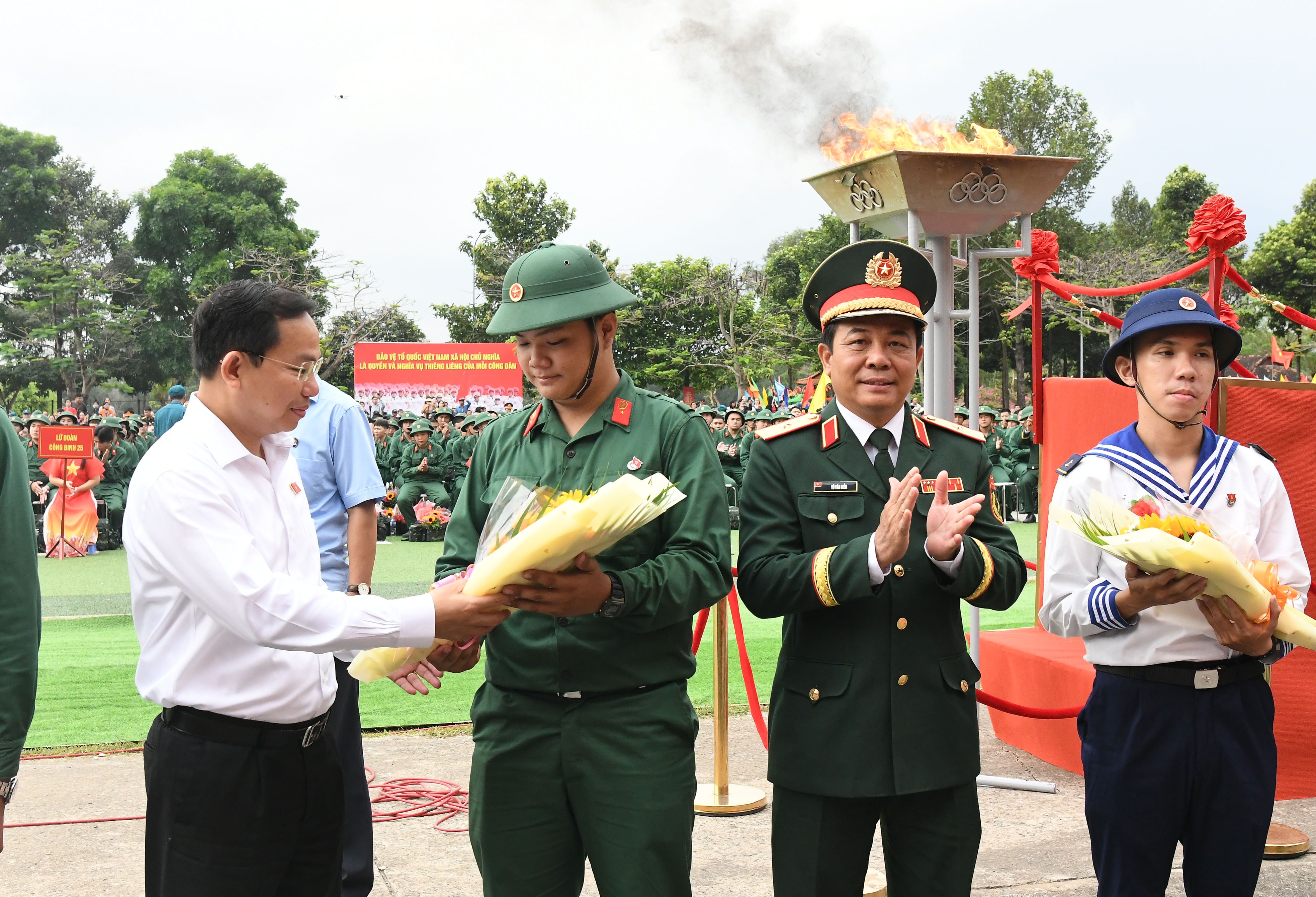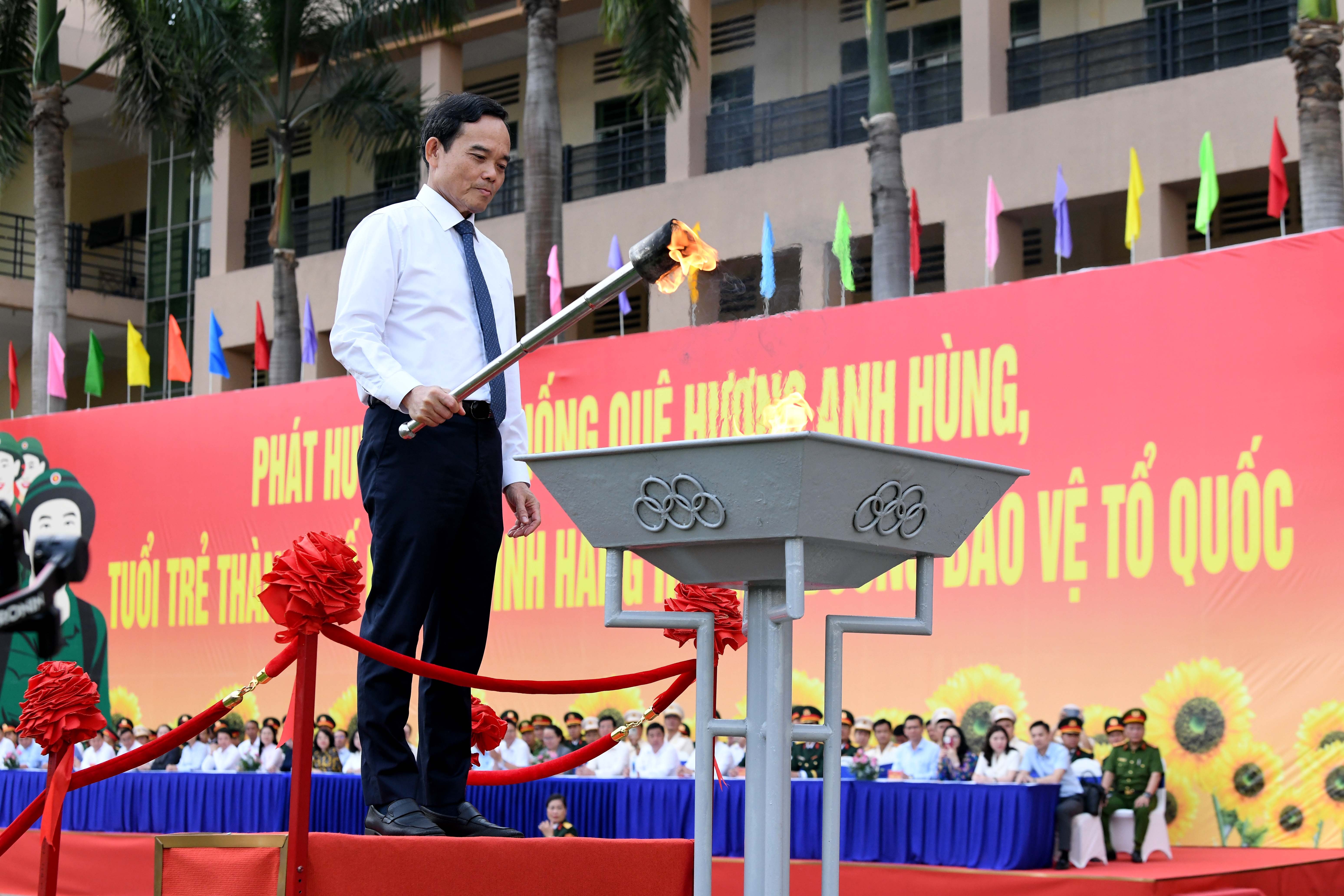 Bí thư Thành ủy Thành phố Hồ Chí Minh Trần Lưu Quang thắp ngọn lửa truyền thống trong ngày Hội giao quân