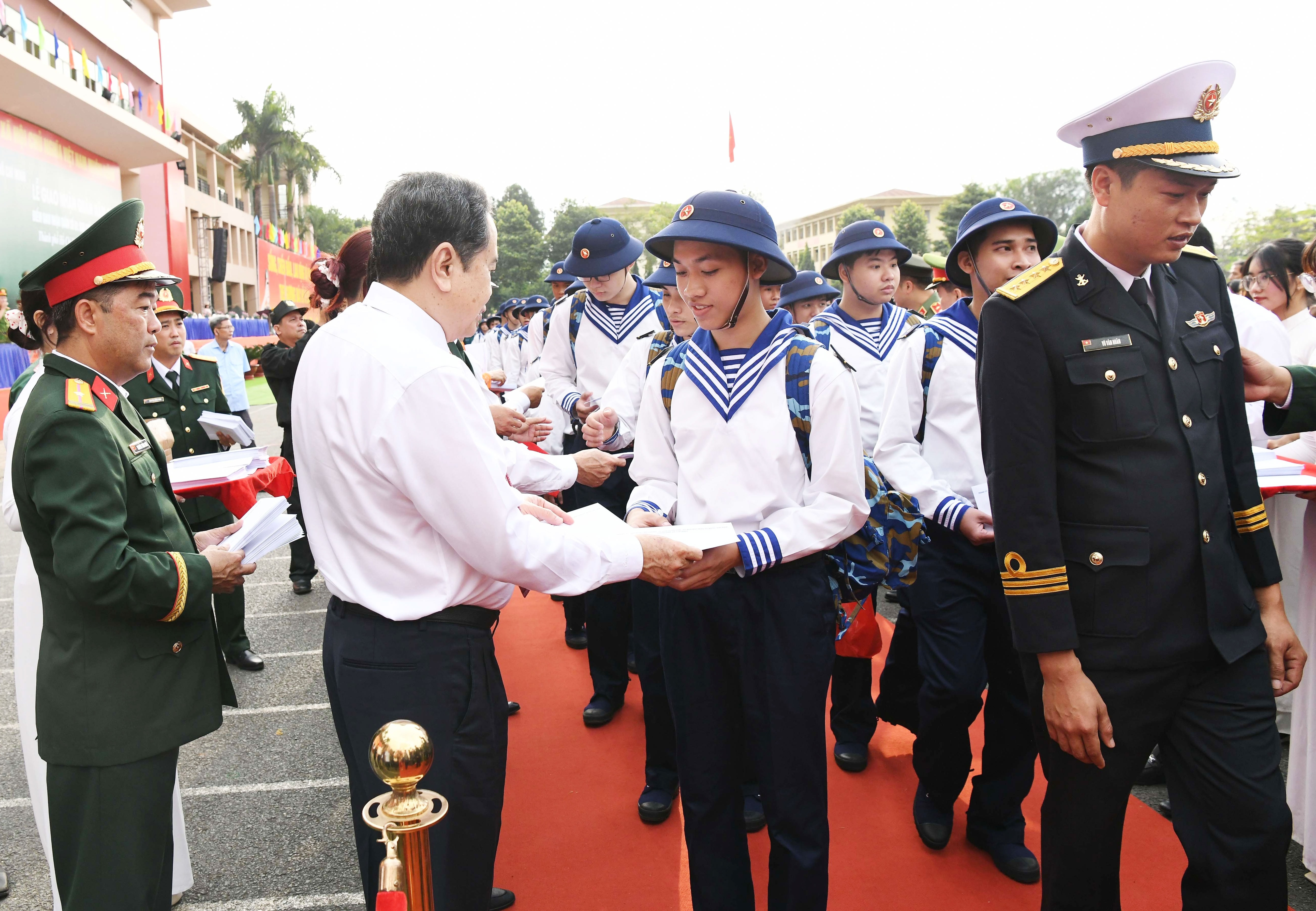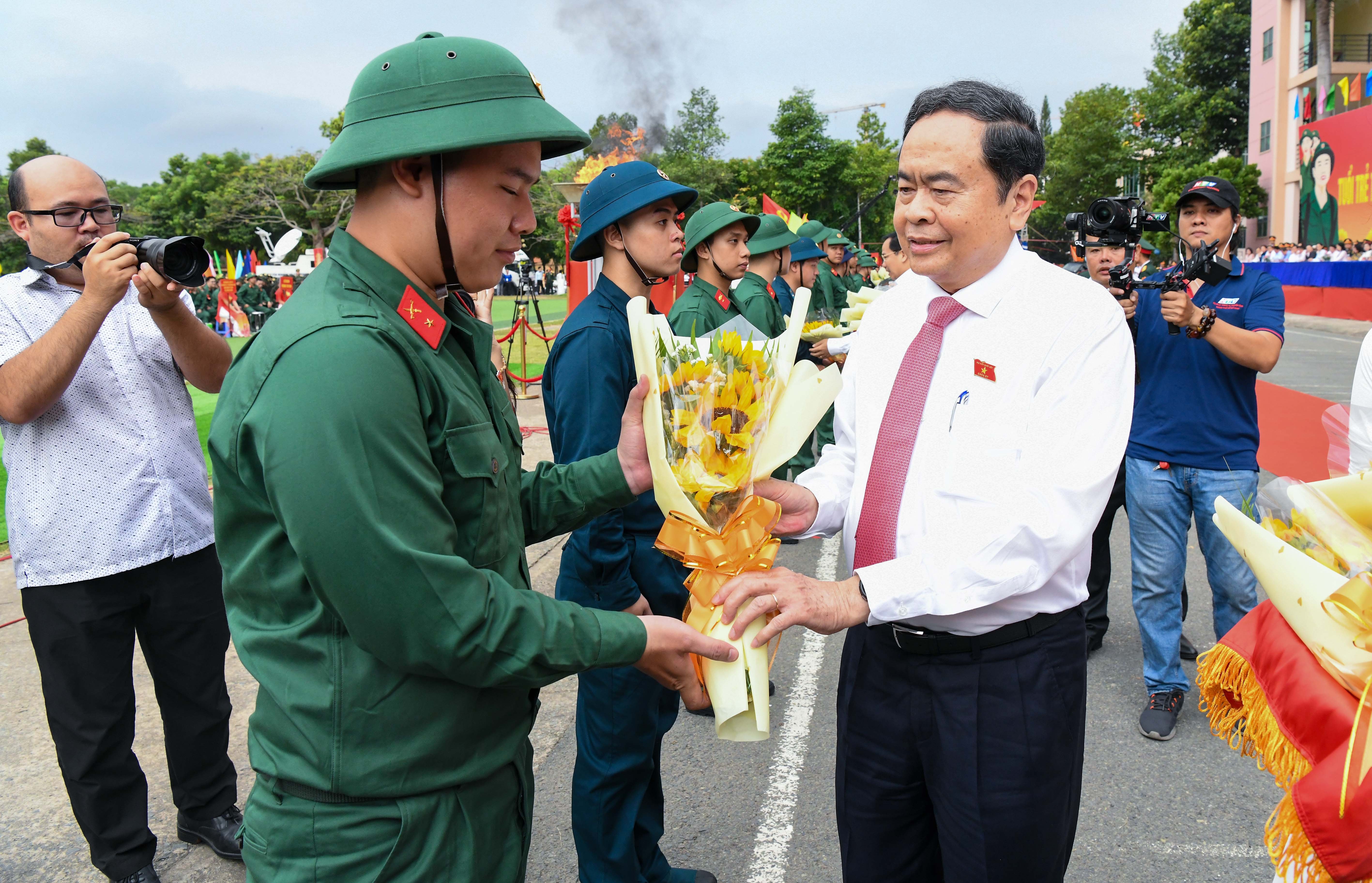 Chủ tịch Quốc hội Trần Thanh Mẫn tặng quà cho các tân binh