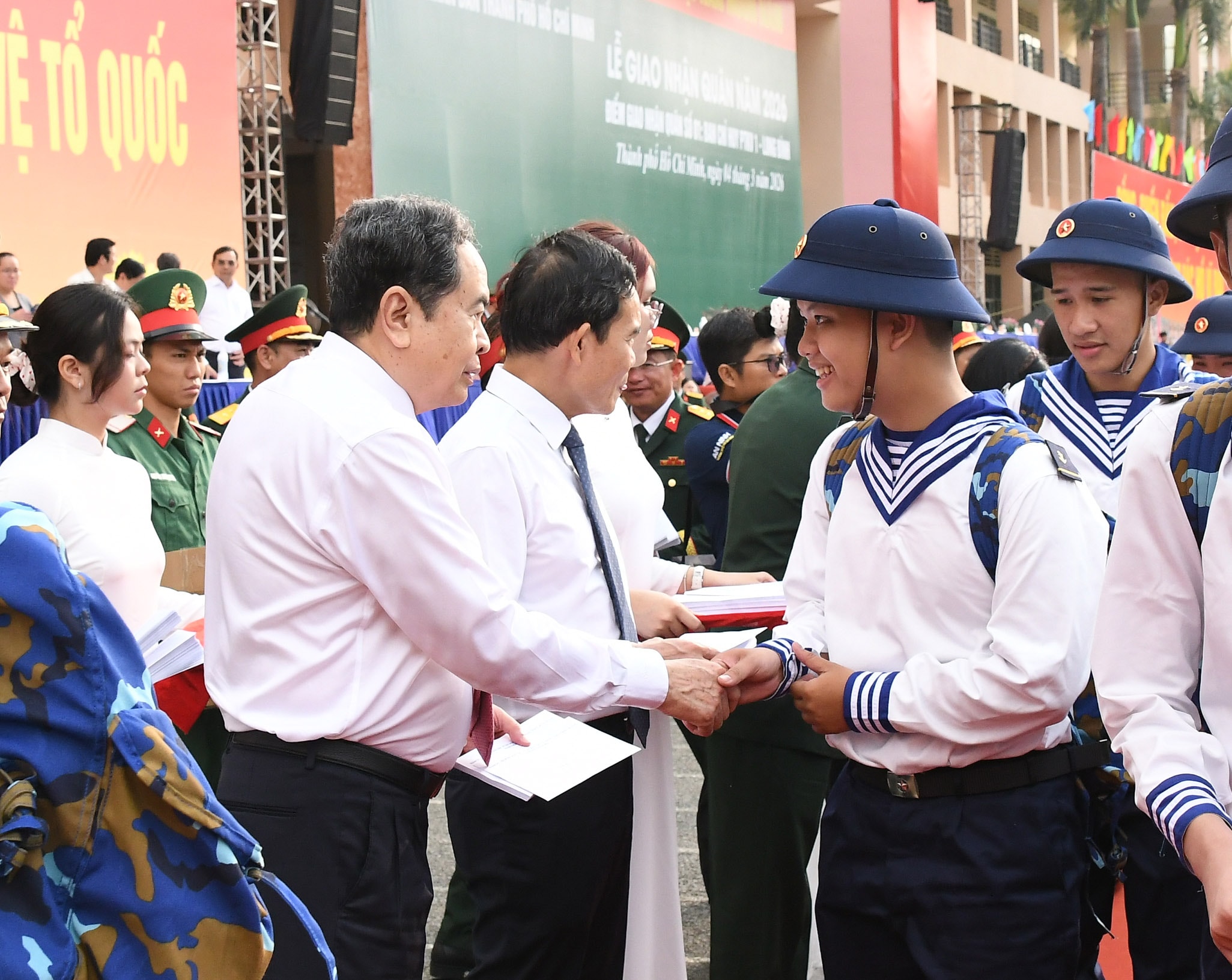 Phát biểu tại Lễ giao nhận quân, Chủ tịch UBND Thành phố Hồ Chí Minh Nguyễn Văn Được nêu rõ, 9.100 thanh niên nhập ngũ hôm nay là lớp thanh niên đầu tiên của Thành phố sau sáp nhập lên đường nhập ngũ, đại diện cho sức trẻ của đô thị đặc biệt, đại diện cho tinh thần đoàn kết, hội tụ và phát triển, cho khát vọng vươn lên của thành phố mang tên Bác Hồ kính yêu.
