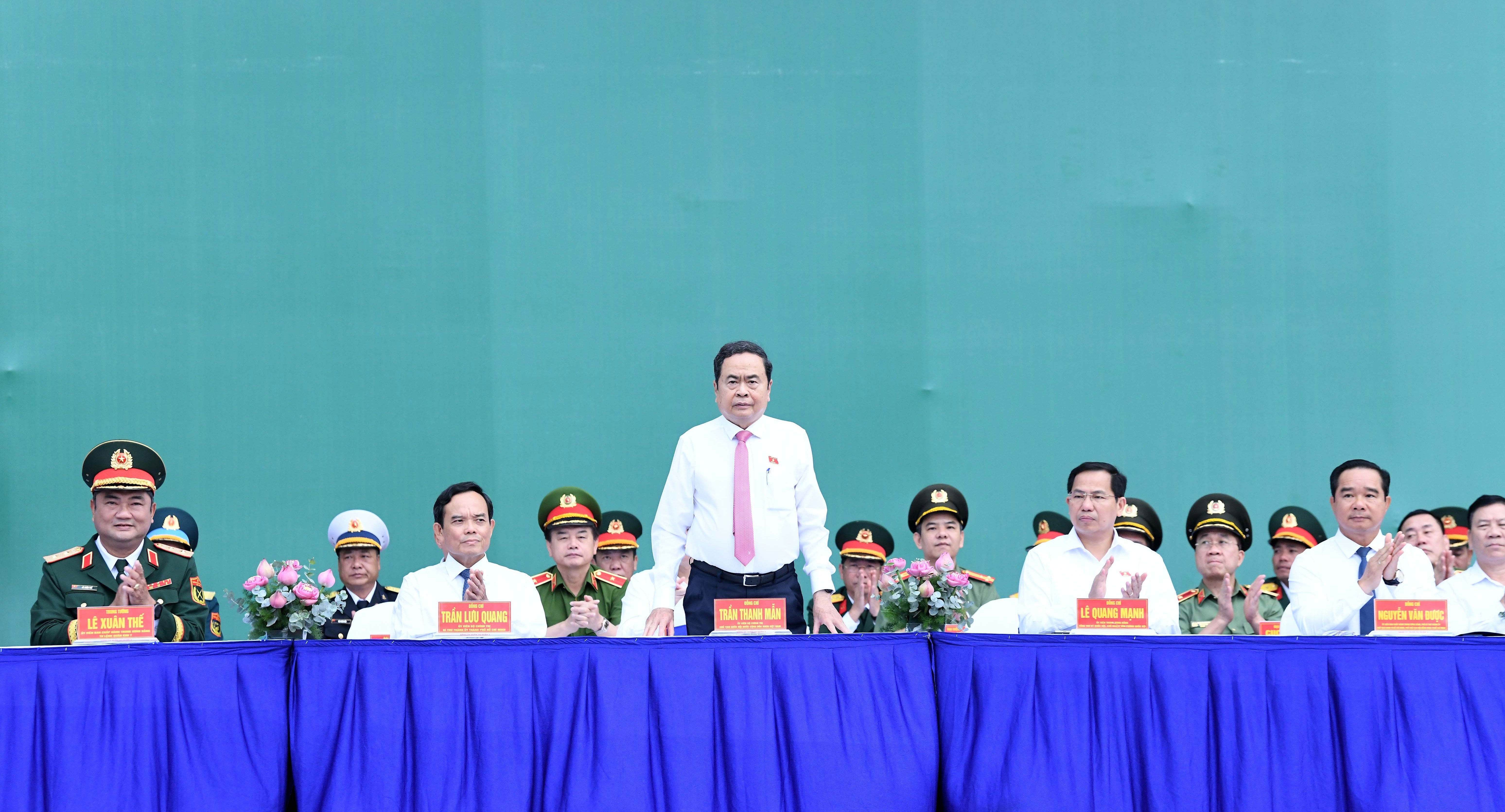 Cùng dự có Ủy viên Bộ Chính trị, Bí thư Thành ủy Thành phố Hồ Chí Minh Trần Lưu Quang và các Ủy viên Trung ương Đảng: Tổng Thư ký Quốc hội, Chủ nhiệm Văn phòng Quốc hội Lê Quang Mạnh; Thứ trưởng Bộ Công an, Thượng tướng Nguyễn Ngọc Lâm; Phó Bí thư Thành ủy, Chủ tịch UBND Thành phố, Chủ tịch Hội đồng nghĩa vụ quân sự TP. Hồ Chí Minh Nguyễn Văn Được; Tư lệnh Quân khu 7, Trung tướng Lê Xuân Thế và lãnh đạo Thành phố Hồ Chí Minh, Quân khu 7…
