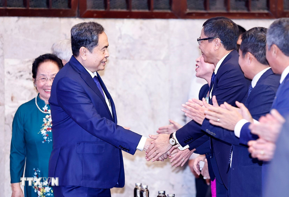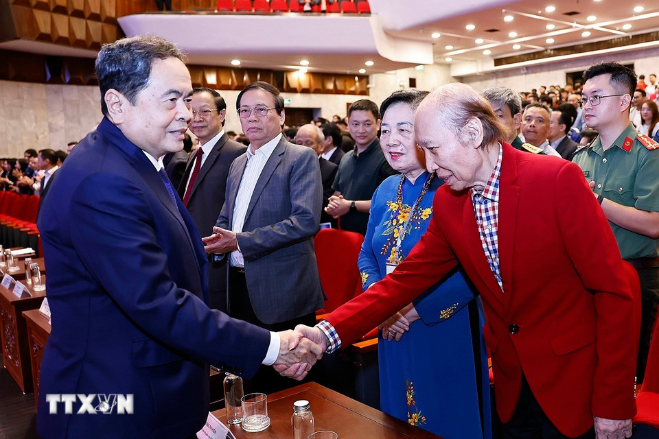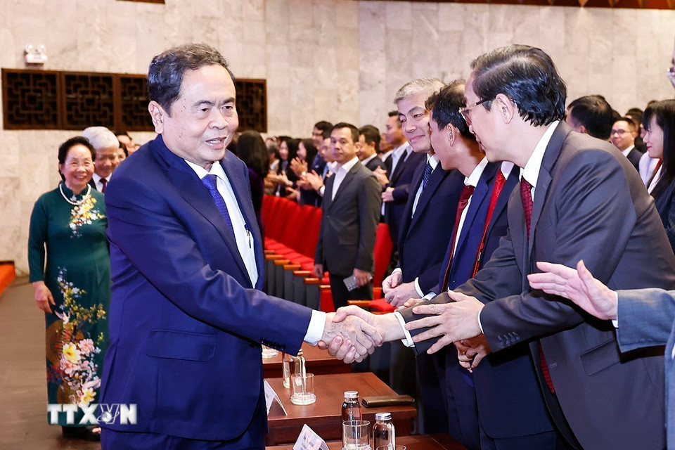 Chủ tịch Quốc hội Trần Thanh Mẫn với đại biểu dự Lễ trao Giải Nhân tài Đất Việt năm 2025. (Ảnh: Doãn Tấn/TTXVN)