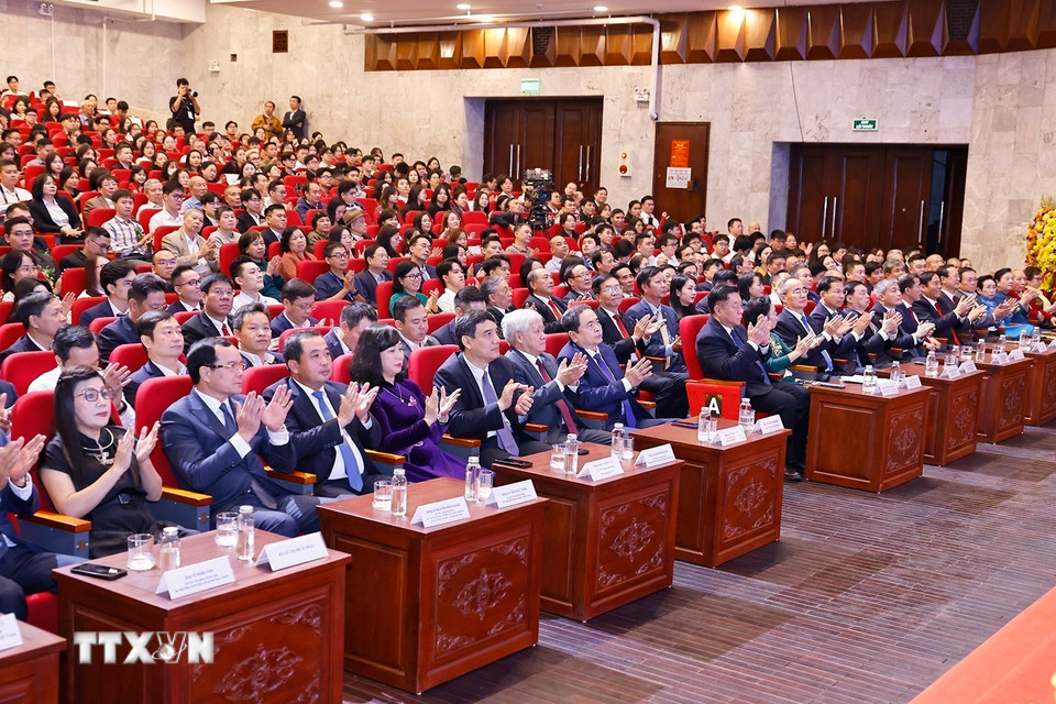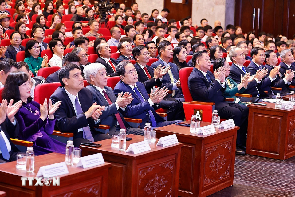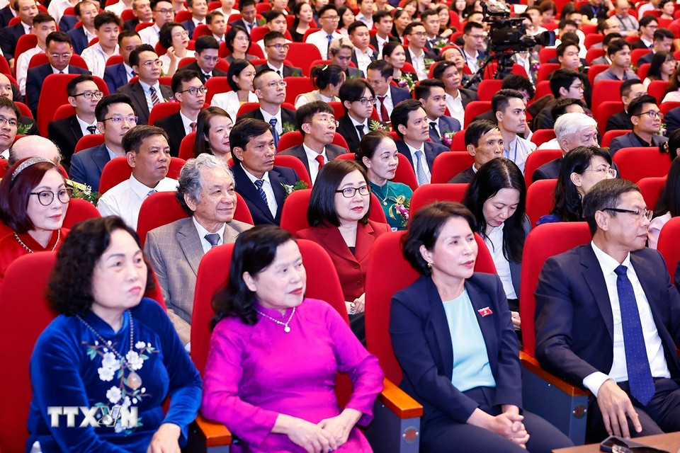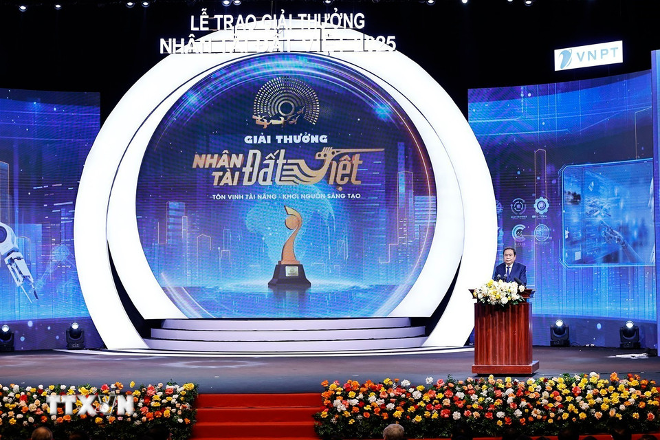 Chủ tịch Quốc hội Trần Thanh Mẫn và đại biểu dự Lễ trao Giải Nhân tài Đất Việt năm 2025. (Ảnh: Doãn Tấn/TTXVN)