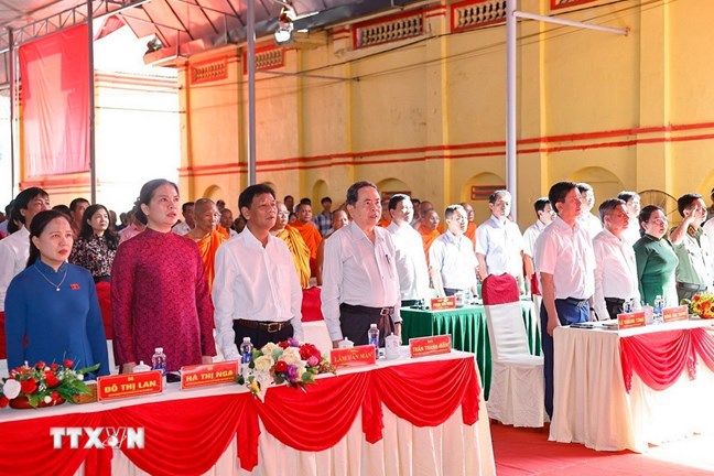 Chủ tịch Quốc hội Trần Thanh Mẫn với các đại biểu dự Ngày hội Đại đoàn kết toàn dân tộc tại Cần Thơ. Ảnh: TTXVN