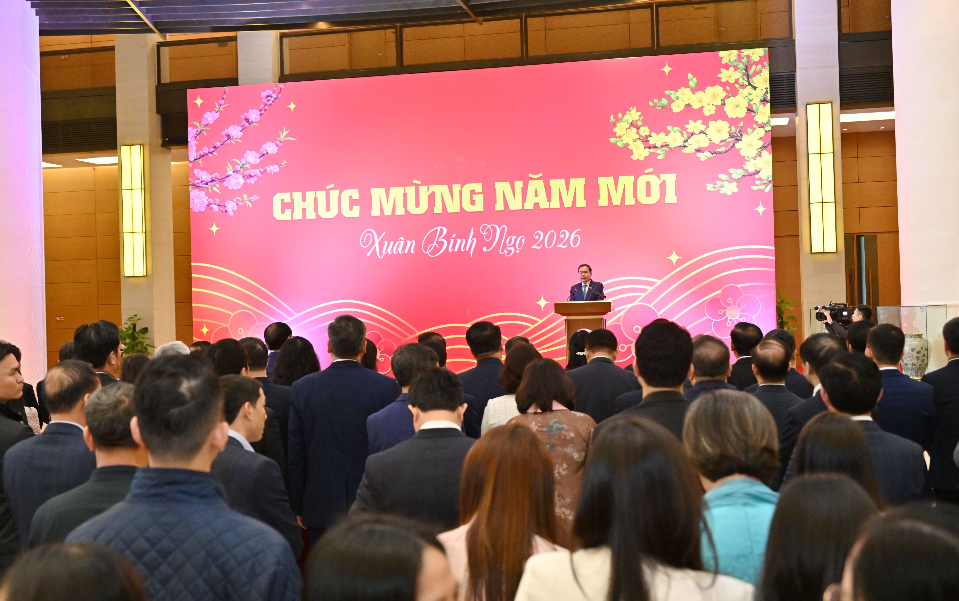 Chủ tịch Quốc hội Trần Thanh Mẫn dự gặp mặt các đại biểu Quốc hội hoạt động chuyên trách ở Trung ương, cán bộ, công chức, viên chức, người lao động các cơ quan của Quốc hội nhân dịp đầu xuân Bính Ngọ 2026. Ảnh: Quang Khánh