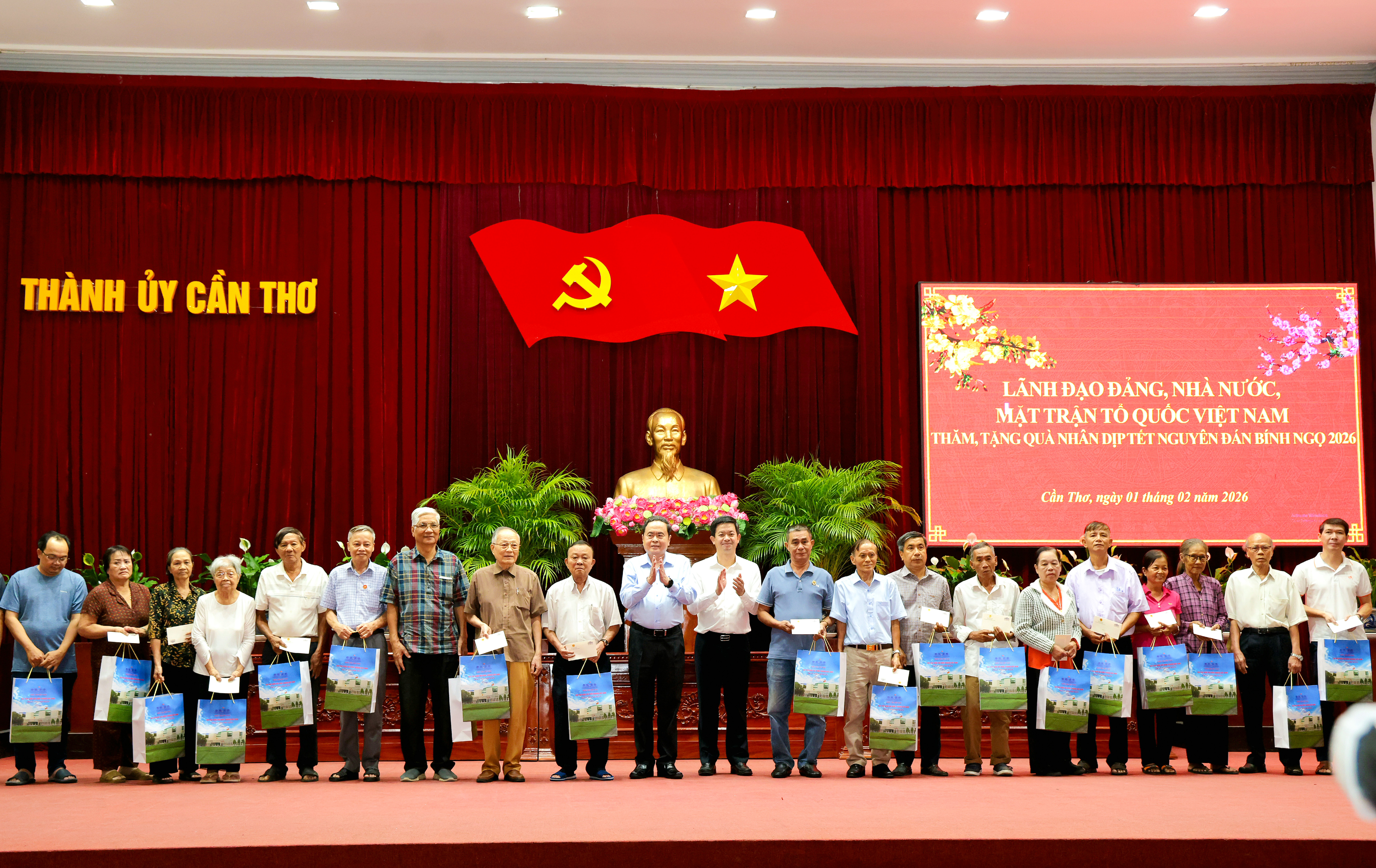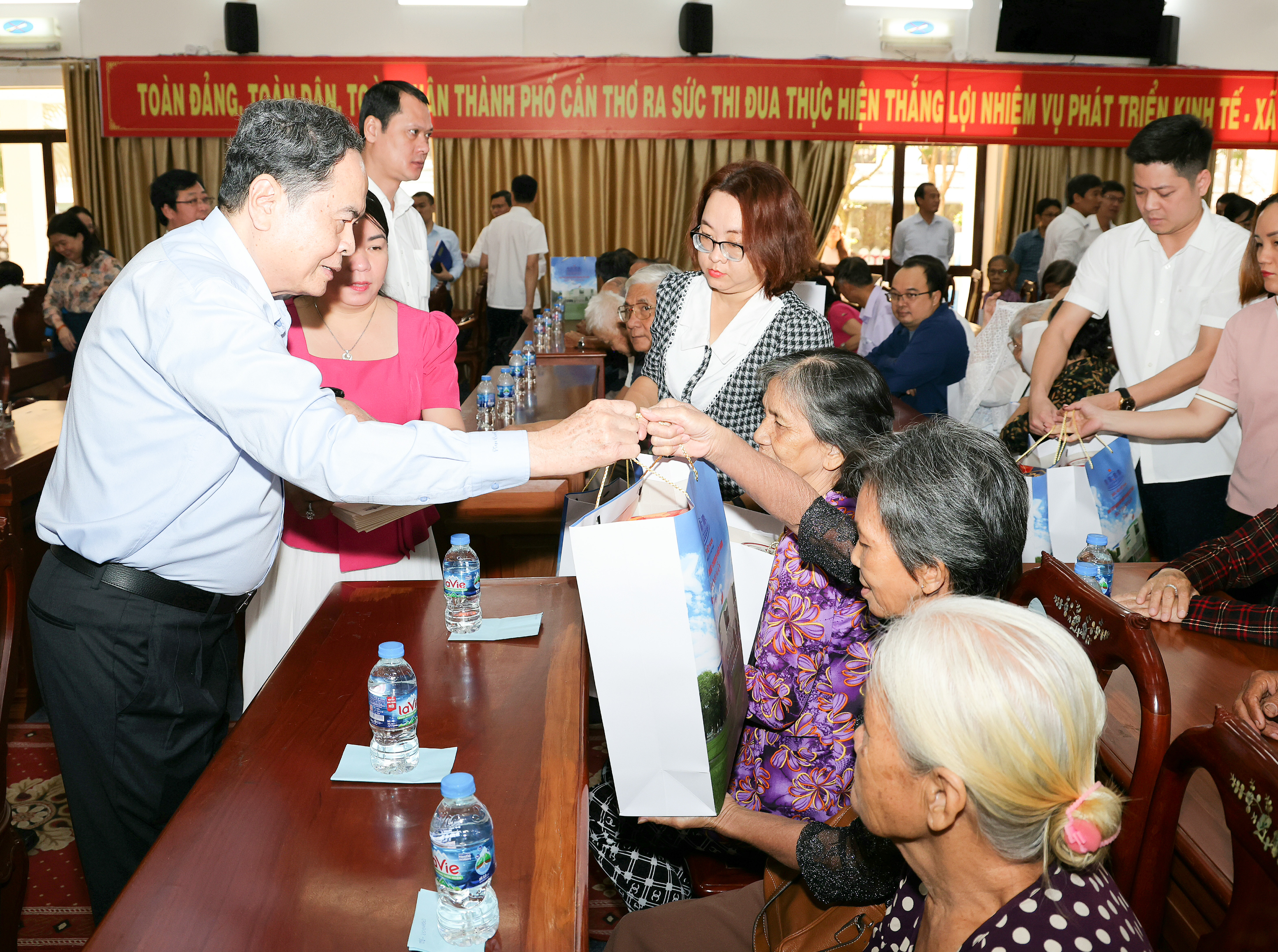 Chủ tịch Quốc hội Trần Thanh Mẫn trao quà đến các nguyên lãnh đạo TP Cần Thơ