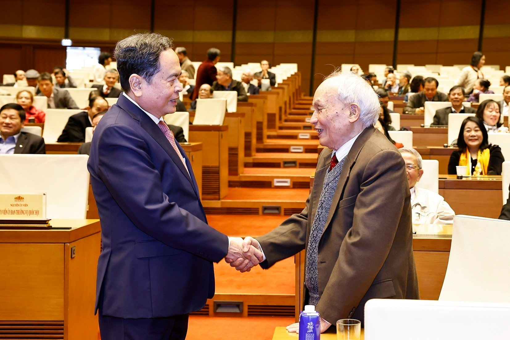 Chủ tịch Quốc hội Trần Thanh Mẫn và đại biểu dự gặp mặt. (Ảnh: TTXVN)