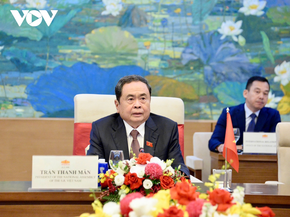 Trao đổi về tình hình hợp tác giữa Quốc hội hai nước, Chủ tịch Quốc hội Trần Thanh Mẫn đã chia sẻ một số nét lớn về kỳ họp lần thứ 10 Quốc hội Khóa XV vừa được khai mạc sáng nay; nhấn mạnh tầm quan trọng của hợp tác giữa hai Quốc hội trong quan hệ hai nước. Hai bên nhất trí tăng cường trao đổi đoàn Lãnh đạo cấp cao Quốc hội, các Ủy ban chuyên môn và Nhóm Nghị sĩ hữu nghị nhằm trao đổi và chia sẻ thông tin, kinh nghiệm trong lĩnh vực hoạt động nghị viện; hợp tác trong việc giám sát, đôn đốc và hỗ trợ Chính phủ thực hiện hiệu quả các thỏa thuận, cam kết cấp cao; nhất trí về chủ đề chính của Hội thảo lập pháp lần thứ 6 giữa hai Quốc hội, dự kiến diễn ra vào nửa đầu năm 2026; đẩy mạnh phối hợp chặt chẽ, ủng hộ lẫn nhau tại các diễn đàn liên nghị viện khu vực và thế giới như IPU, ASEP để đóng góp cho hòa bình, hợp tác và phát triển ở khu vực và trên thế giới.