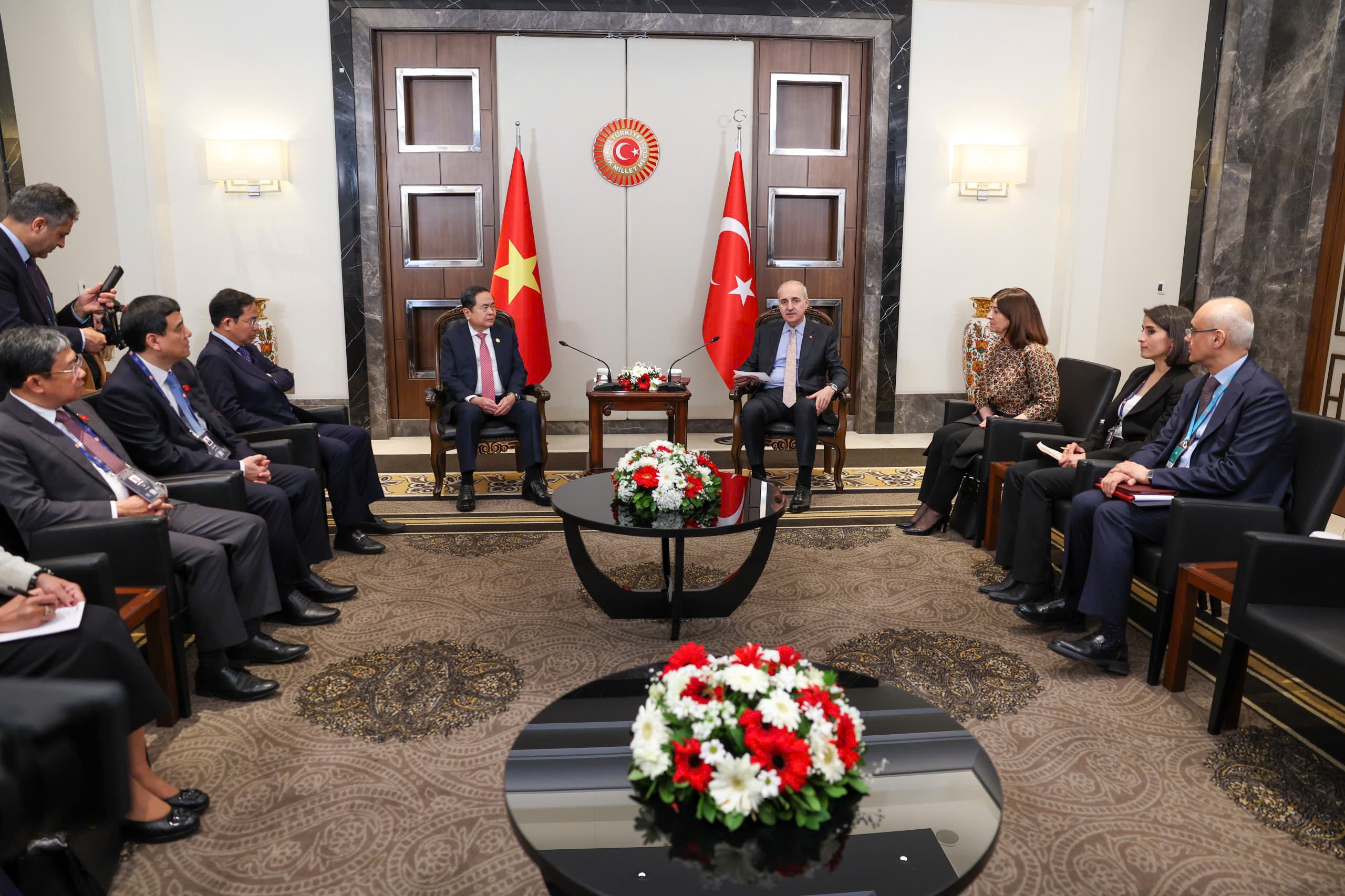 Nhân dịp này, Chủ tịch Quốc hội trân trọng chuyển lời thăm hỏi của Tổng Bí thư, Chủ tịch nước Tô Lâm và Thủ tướng Chính phủ Lê Minh Hưng tới Chủ tịch Quốc hội Numan Kurtulmus và các nhà lãnh đạo Thổ Nhĩ Kỳ.