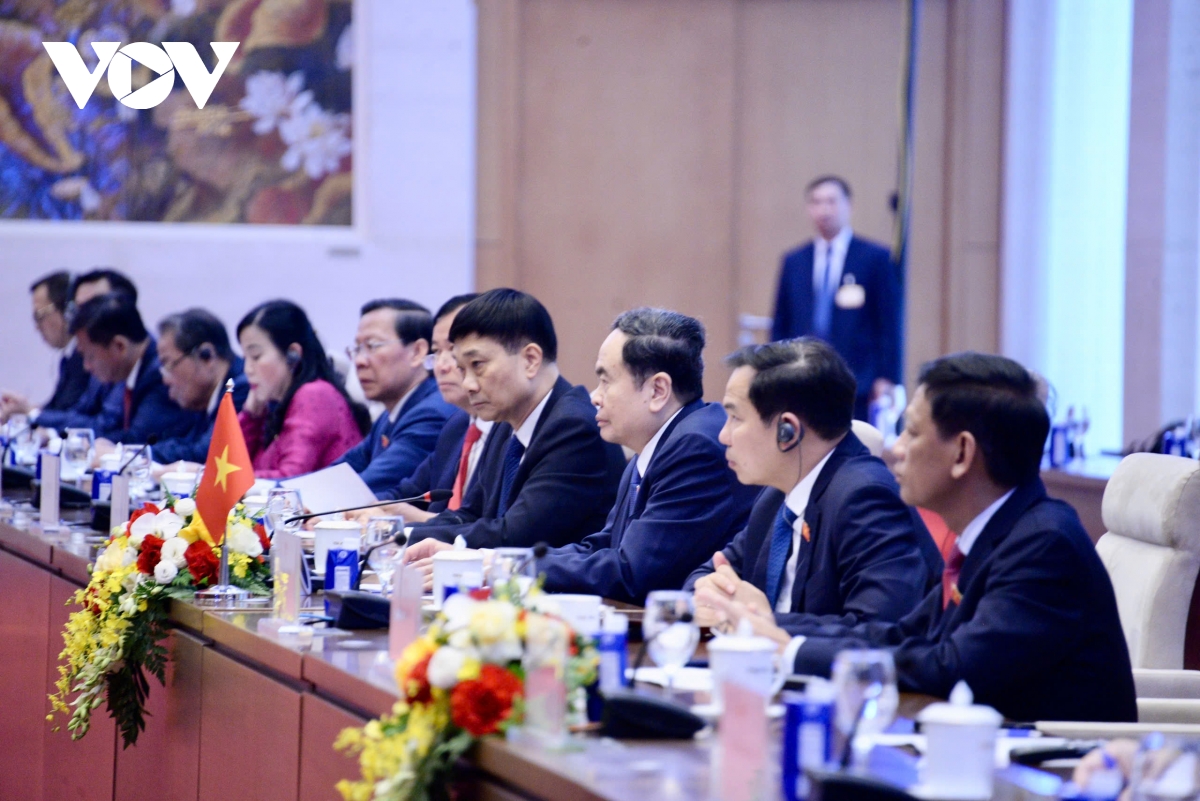 Quốc hội Việt Nam sẽ tiếp tục tăng cường trao đổi đoàn cấp cao, chia sẻ kinh nghiệm lập pháp, giám sát, hợp tác giữa hai cơ quan lập pháp; thúc đẩy thực hiện hiệu quả các thỏa thuận hợp tác đã ký kết; hỗ trợ Lào tại các diễn đàn quốc tế, khu vực; đồng thời phối hợp chặt chẽ để tháo gỡ khó khăn, mở rộng các lĩnh vực hợp tác mới như kinh tế số, chuyển đổi năng lượng xanh, kết nối hạ tầng, giáo dục - đào tạo, phù hợp với định hướng sau Đại hội 12 của Đảng Nhân dân Cách mạng Lào và Đại hội XIV của Đảng Cộng sản Việt Nam; sẵn sàng chia sẻ kinh nghiệm trong lĩnh vực chuyển đổi số, xây dựng Quốc hội số và ứng dụng trí tuệ nhân tạo trong các hoạt động của Quốc hội.