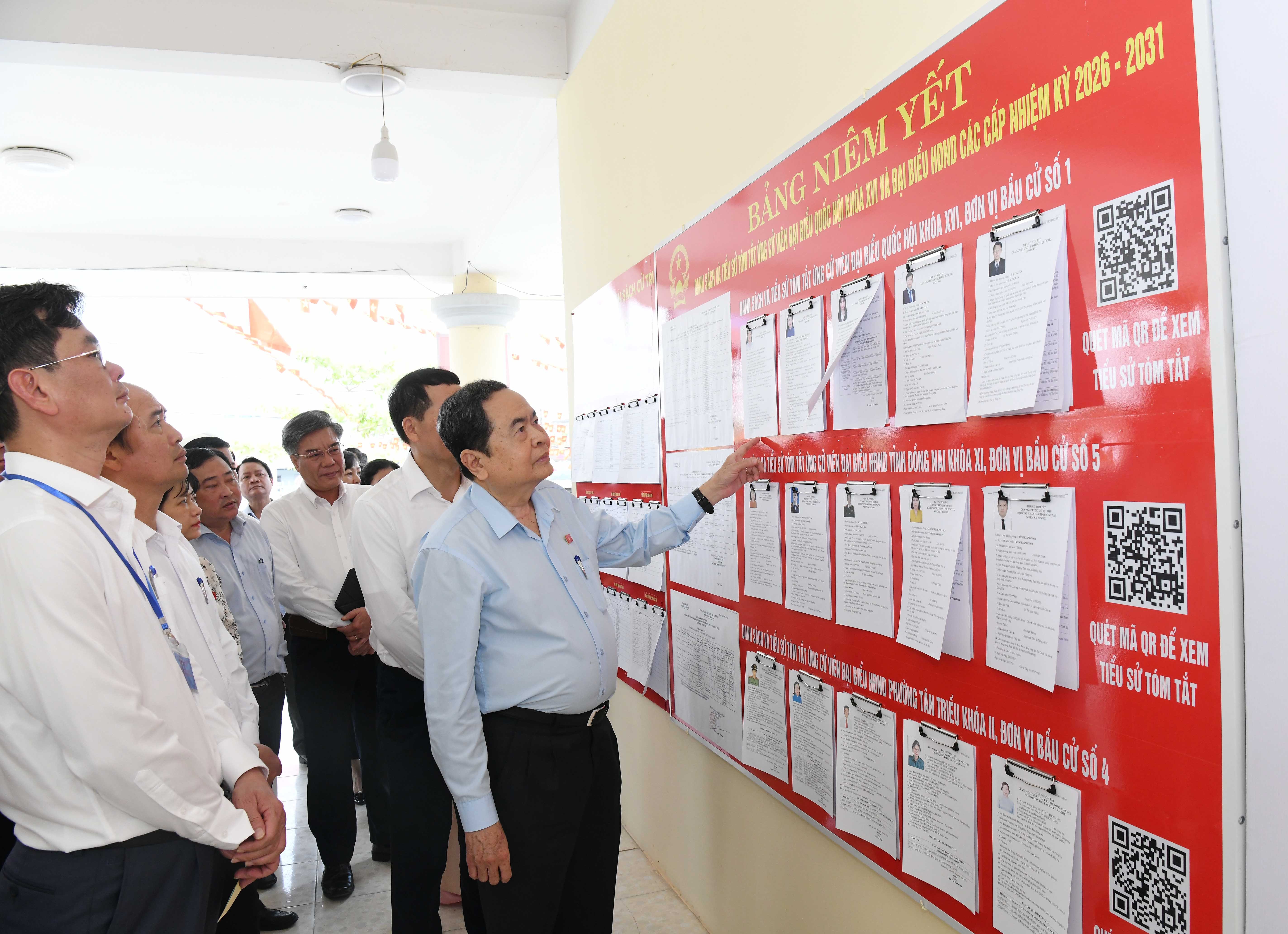 Qua kiểm tra thực tế công tác chuẩn bị tại Khu vực bỏ phiếu số 17, phường Tân Triều, Chủ tịch Quốc hội Trần Thanh Mẫn ghi nhận và đánh giá cao sự nỗ lực của địa phương trong chuẩn bị cơ sở vật chất, danh sách cử tri, danh sách người ứng cử, địa điểm ghi phiếu của cử tri, hòm phiếu và phương án bảo đảm an ninh, an toàn khu vực bỏ phiếu.